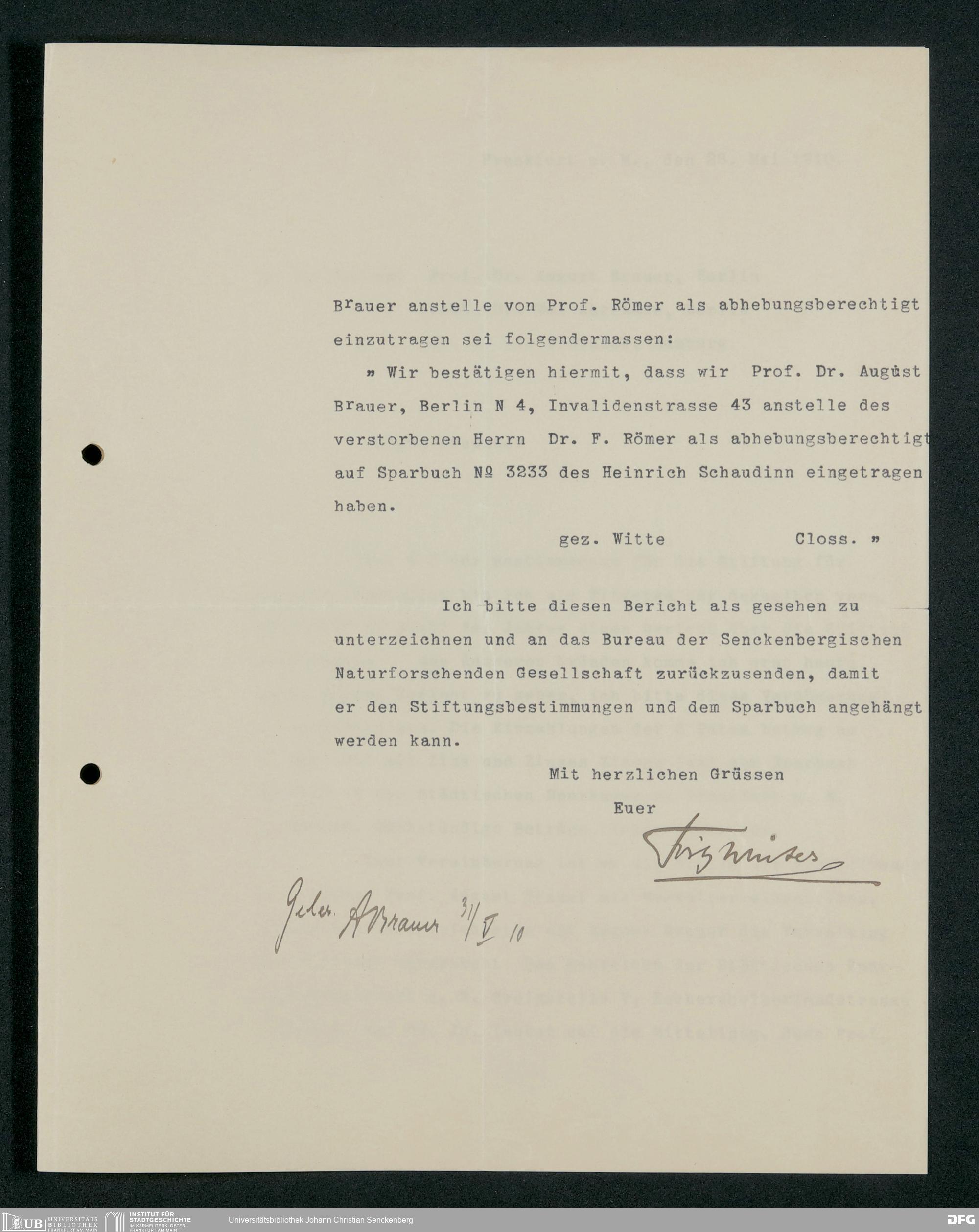 V176 Senckenberg Gesellschaft für Naturforschung, 399 - Verwaltung des Stiftungskapitals der Heinrich-Schaudinn-Stiftung