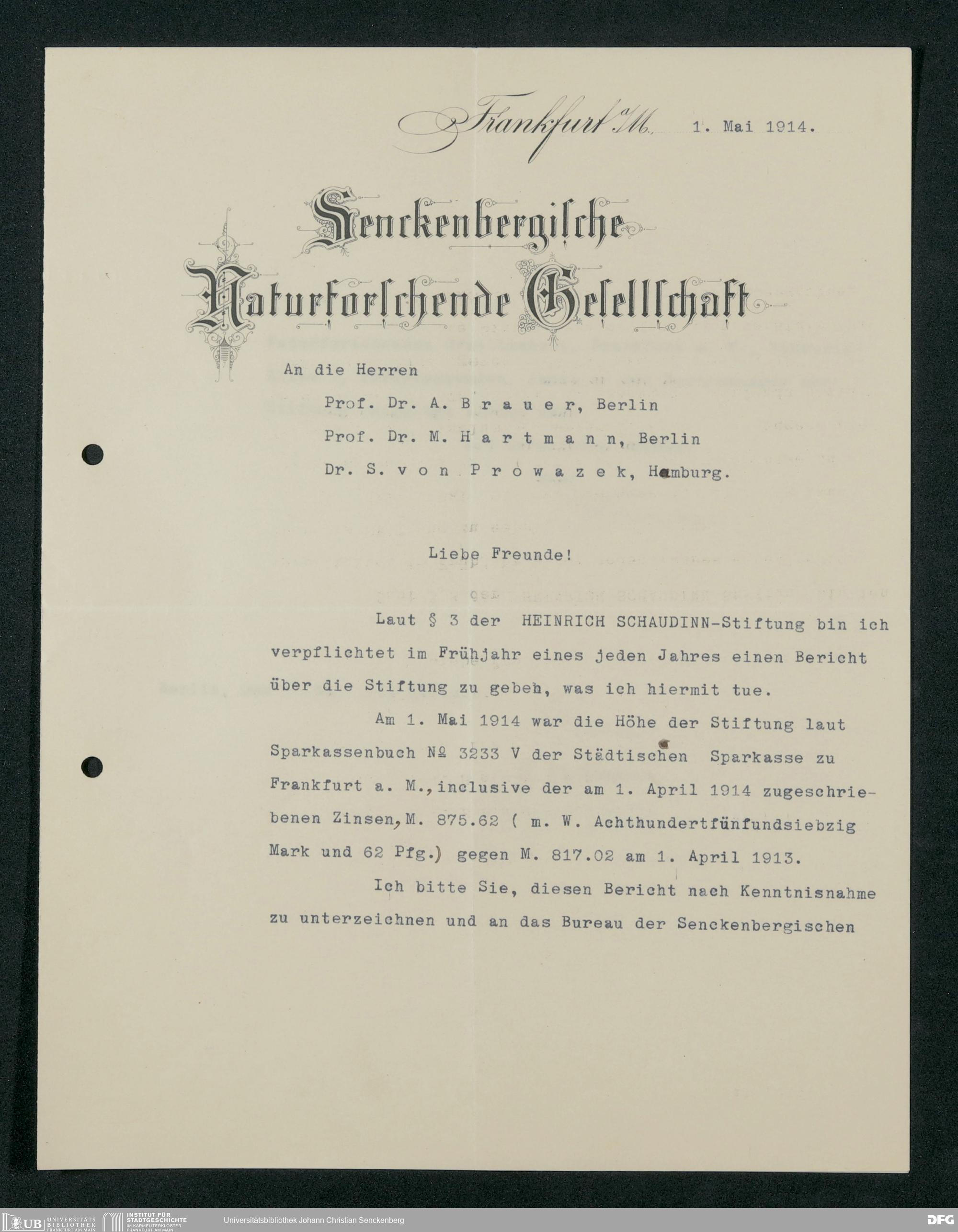 V176 Senckenberg Gesellschaft für Naturforschung, 399 - Verwaltung des Stiftungskapitals der Heinrich-Schaudinn-Stiftung