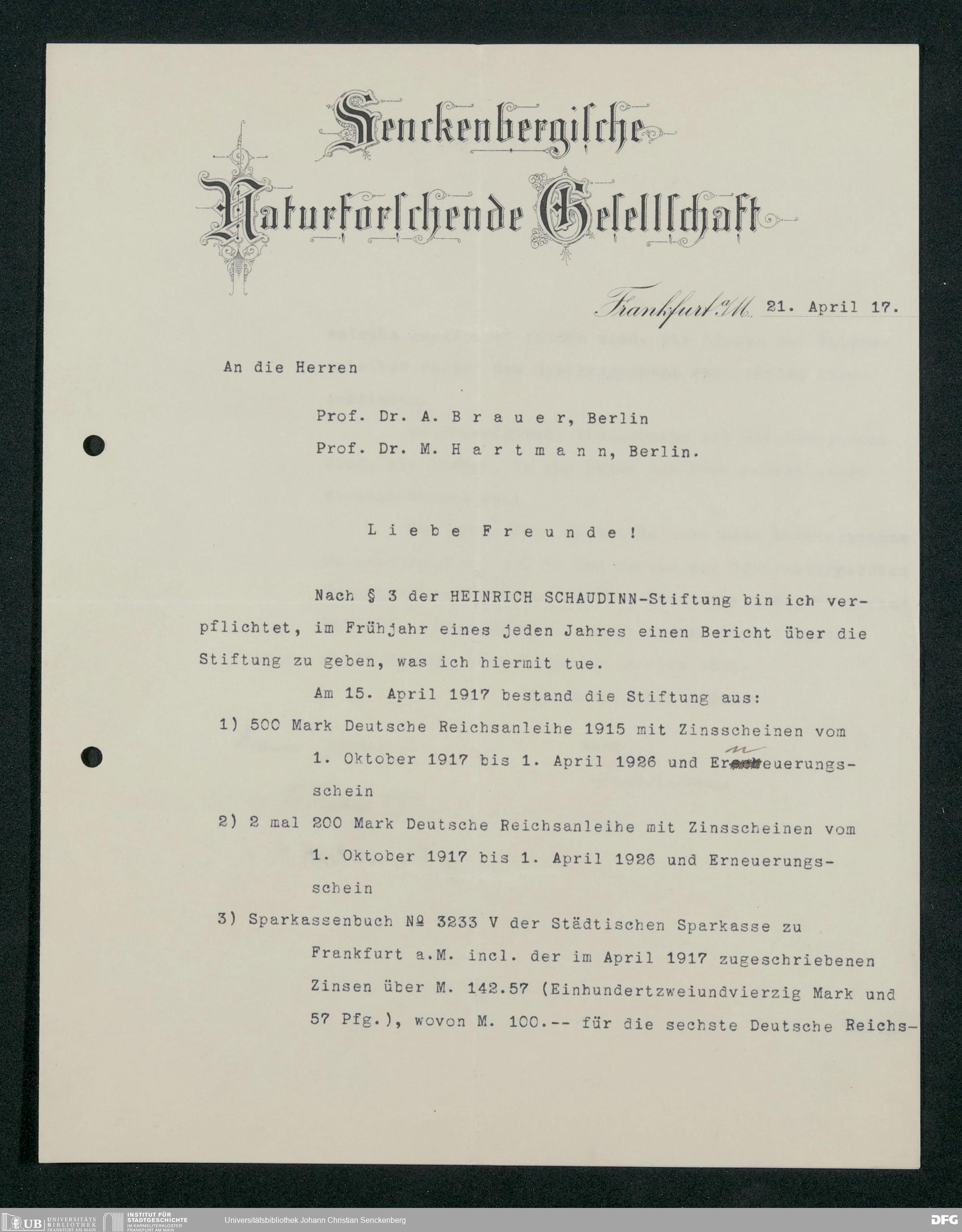 V176 Senckenberg Gesellschaft für Naturforschung, 399 - Verwaltung des Stiftungskapitals der Heinrich-Schaudinn-Stiftung