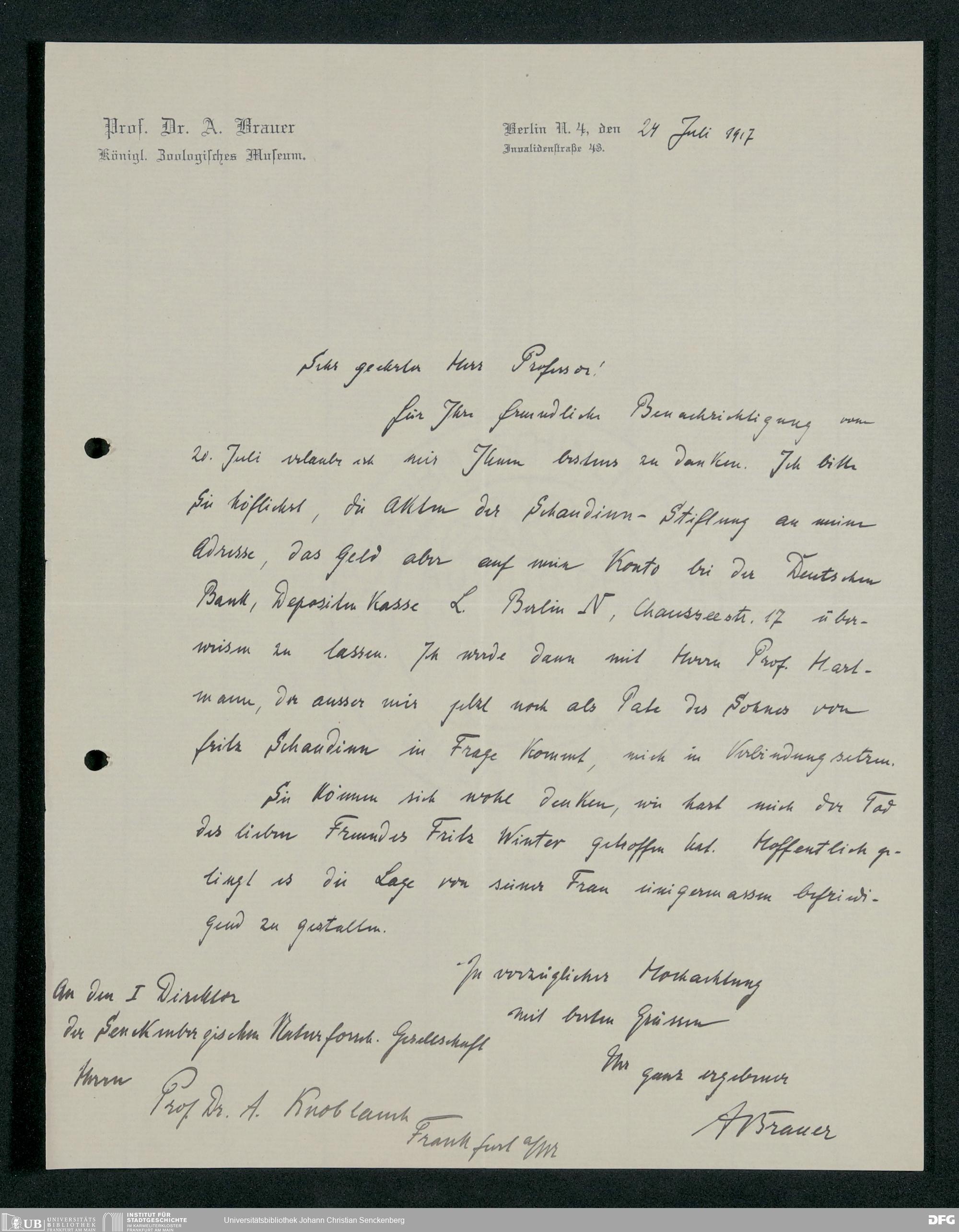 V176 Senckenberg Gesellschaft für Naturforschung, 399 - Verwaltung des Stiftungskapitals der Heinrich-Schaudinn-Stiftung