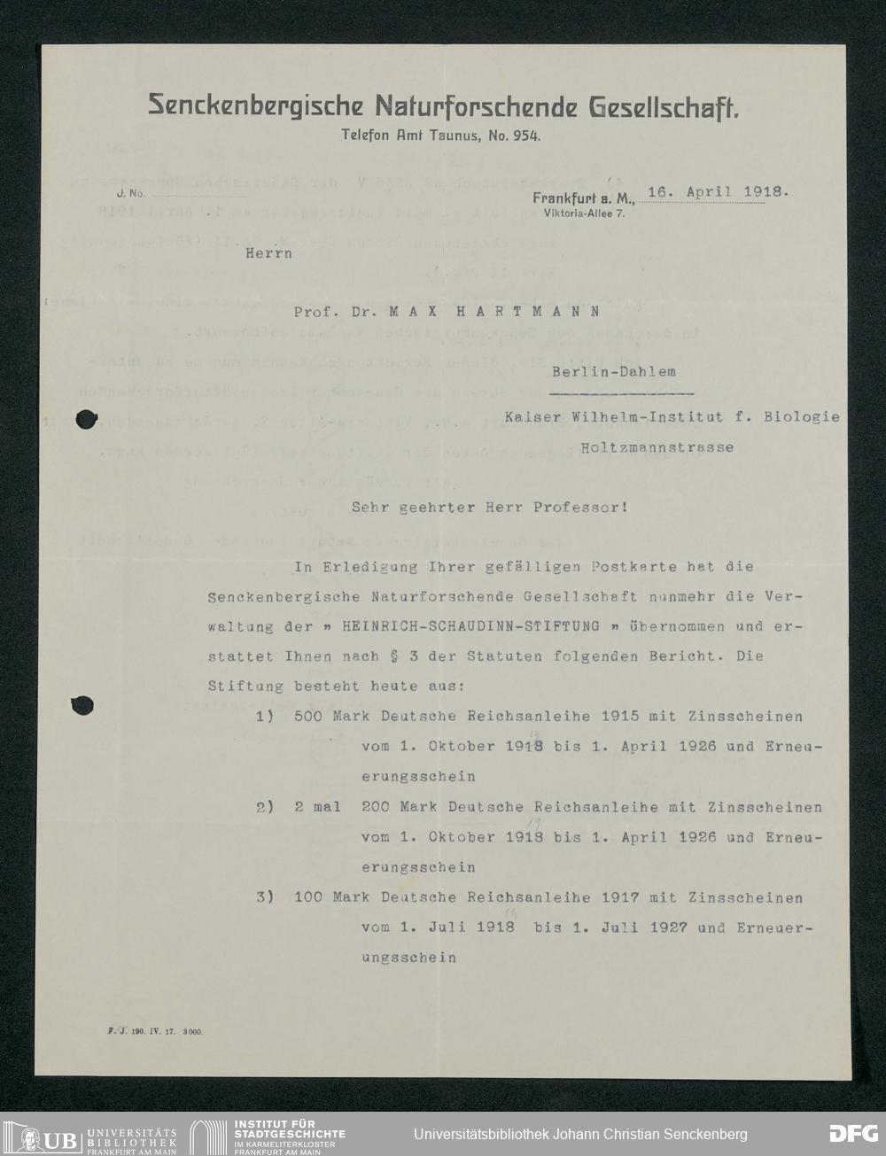 V176 Senckenberg Gesellschaft für Naturforschung, 399 - Verwaltung des Stiftungskapitals der Heinrich-Schaudinn-Stiftung