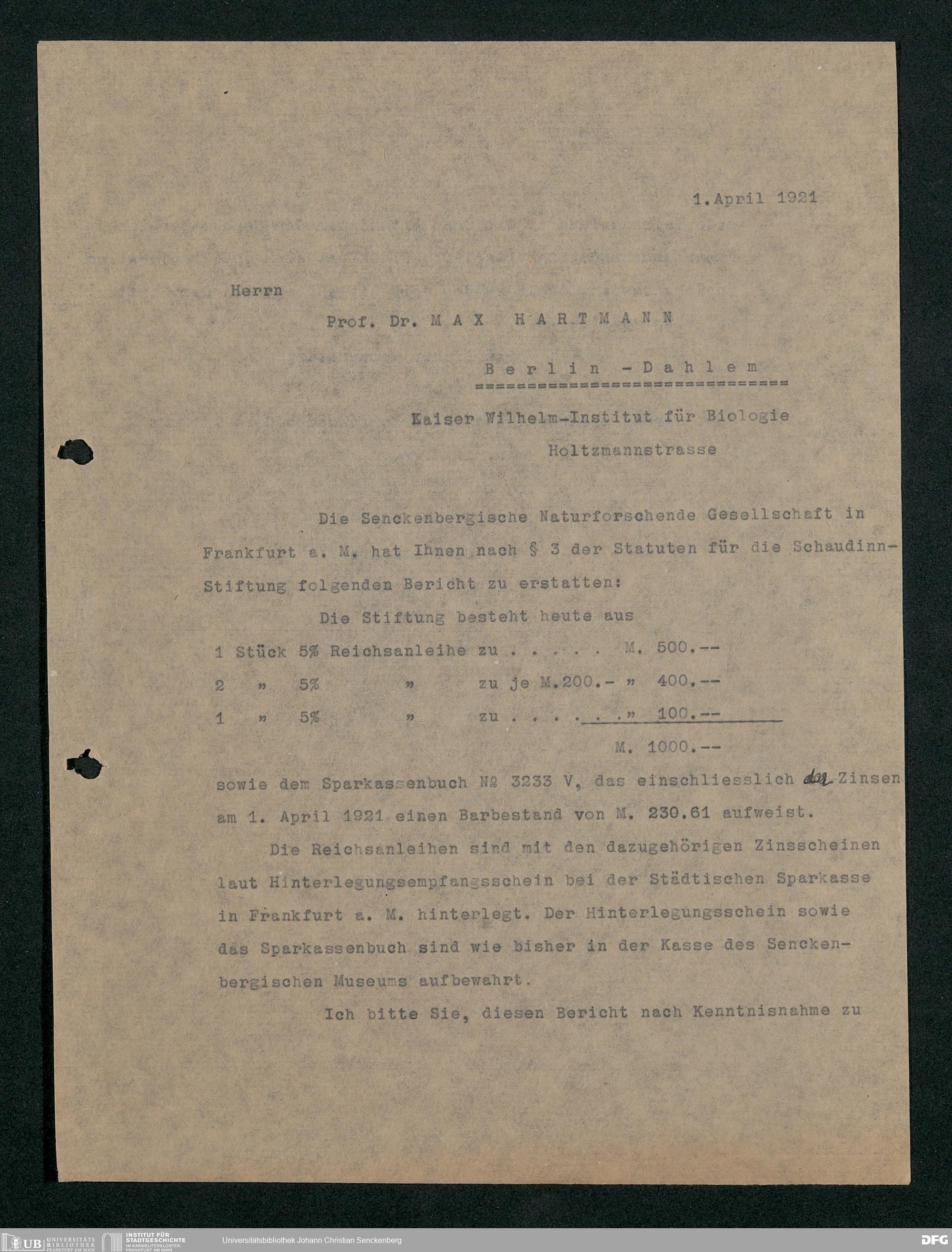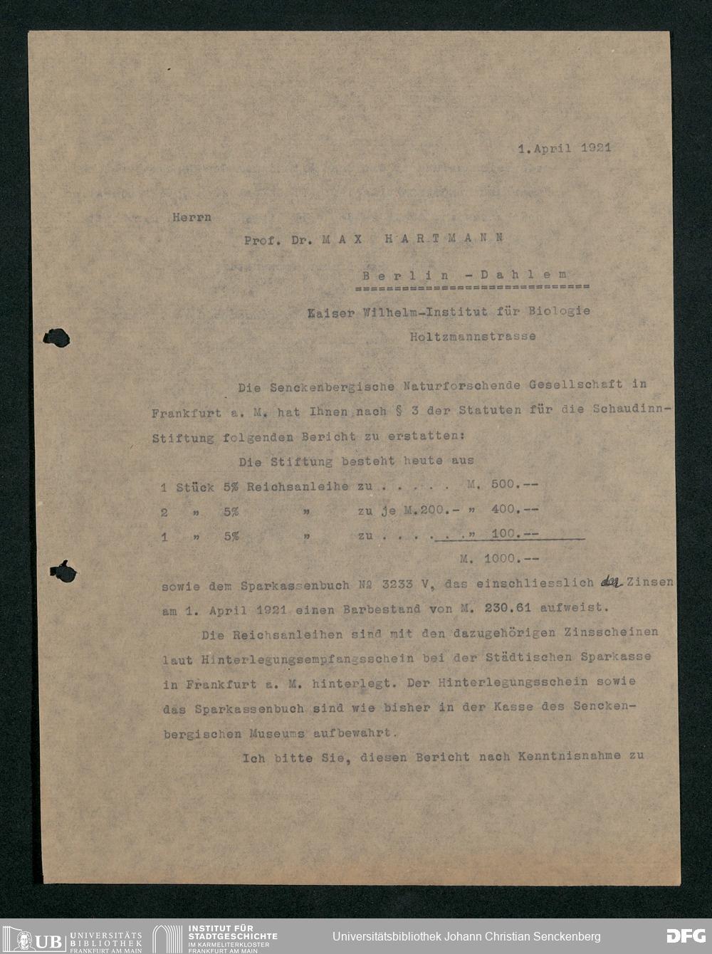 V176 Senckenberg Gesellschaft für Naturforschung, 399 - Verwaltung des Stiftungskapitals der Heinrich-Schaudinn-Stiftung