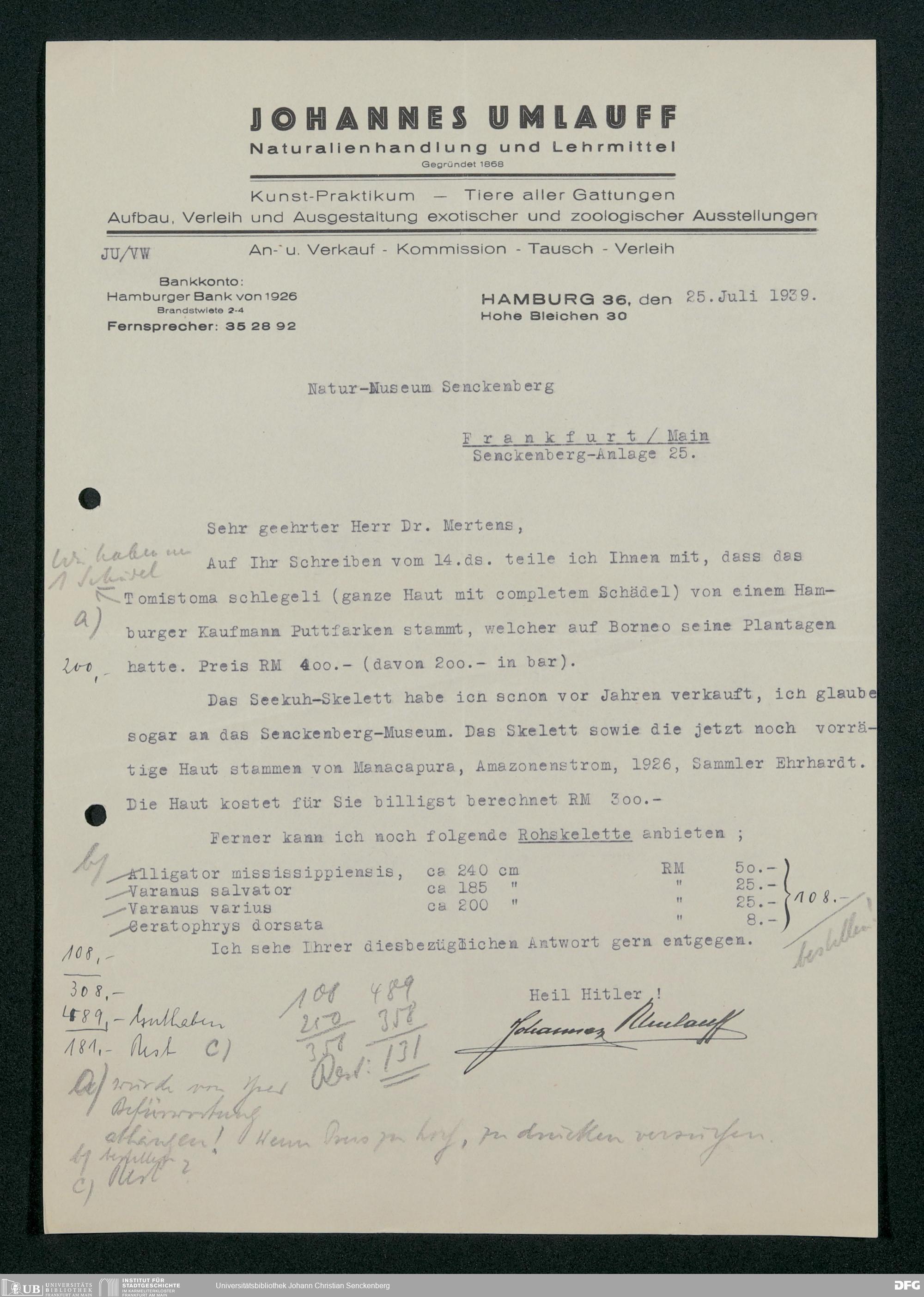 V176 Senckenberg Gesellschaft für Naturforschung, 189 - Ankauf zoologischer Exponate, Bd. 2