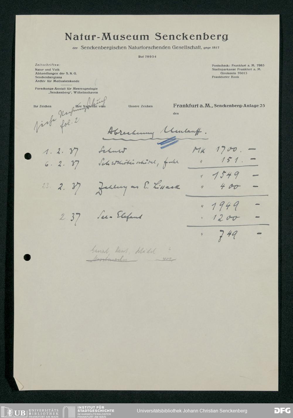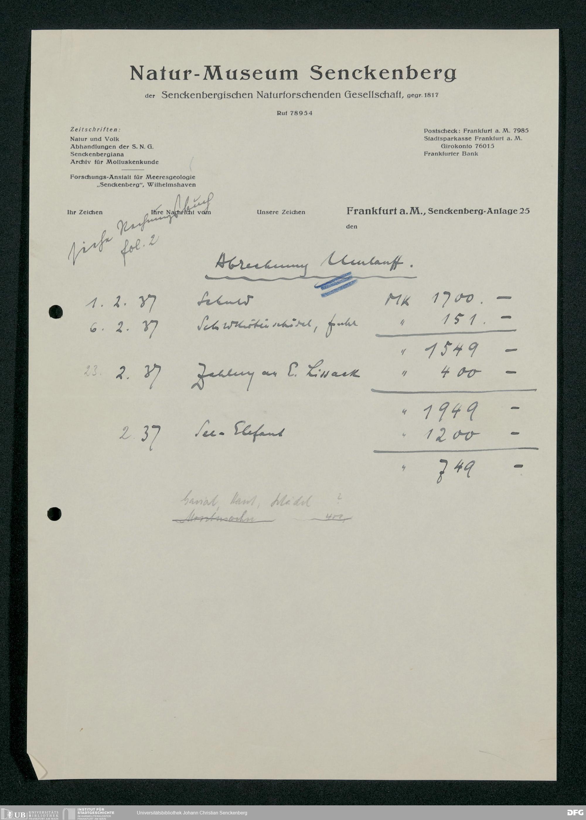 V176 Senckenberg Gesellschaft für Naturforschung, 189 - Ankauf zoologischer Exponate, Bd. 2