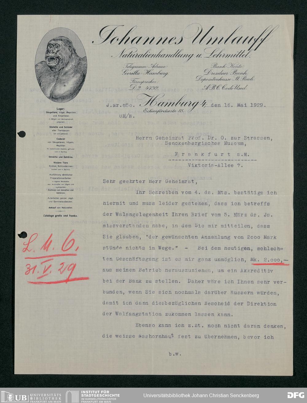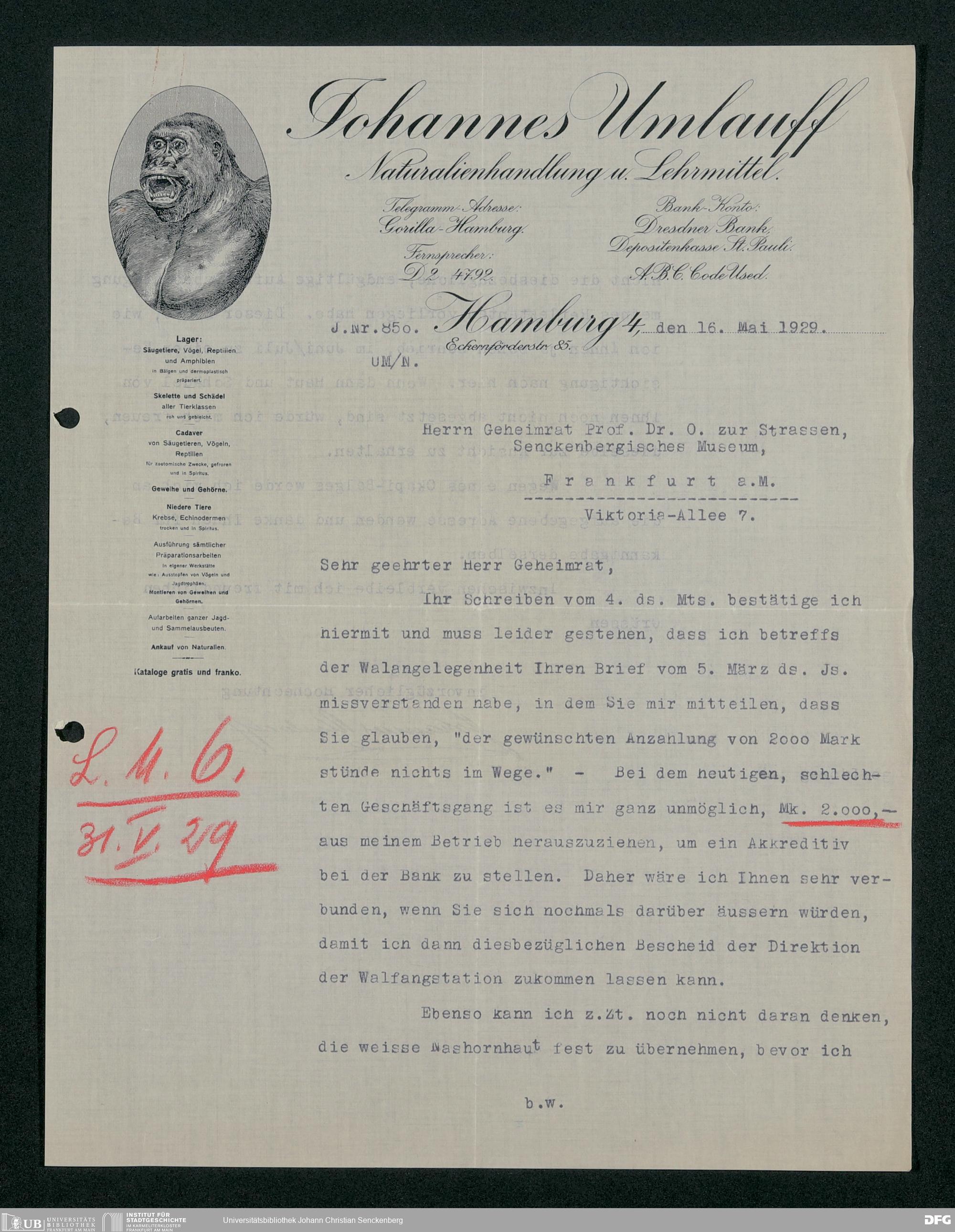 V176 Senckenberg Gesellschaft für Naturforschung, 189 - Ankauf zoologischer Exponate, Bd. 2