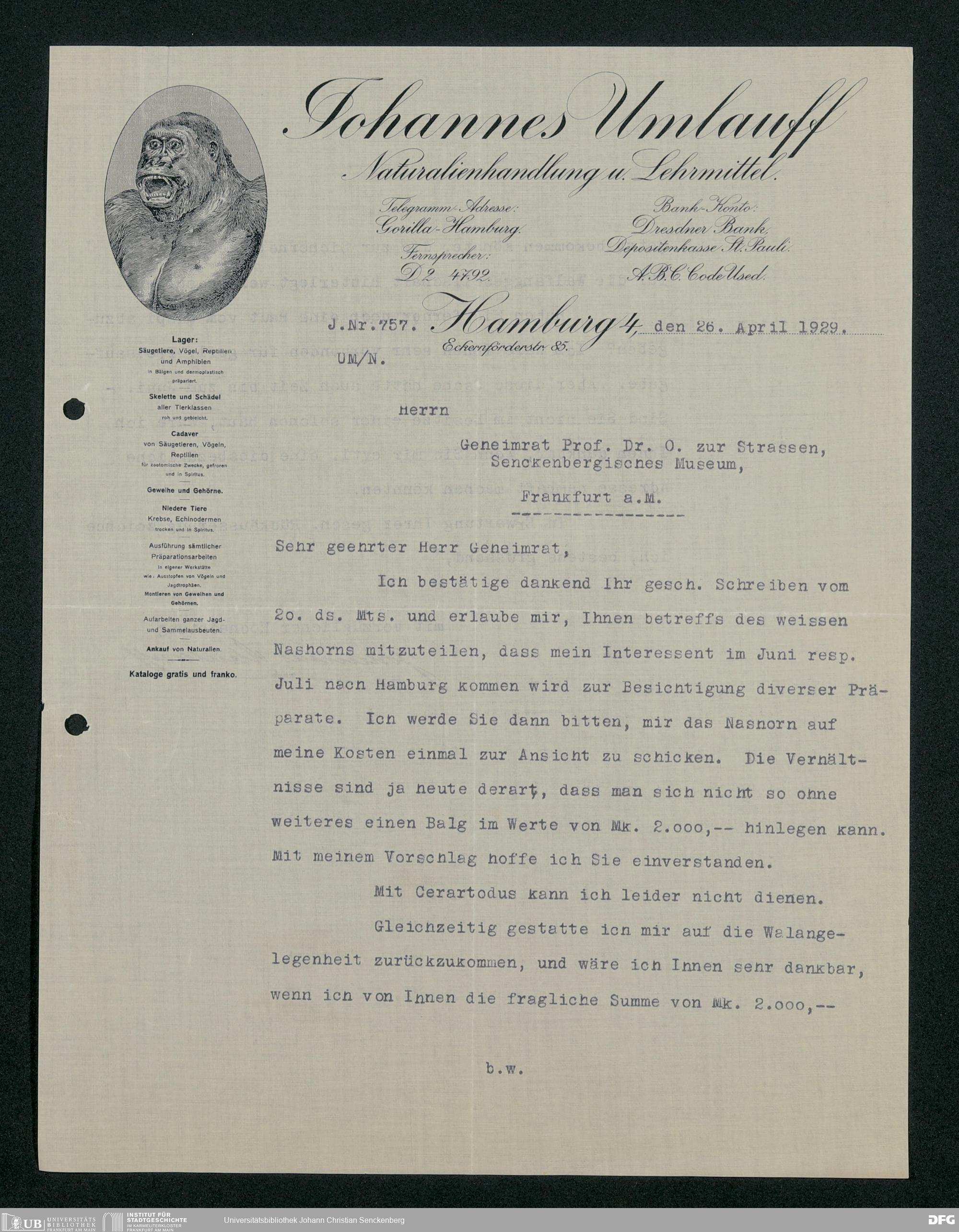 V176 Senckenberg Gesellschaft für Naturforschung, 189 - Ankauf zoologischer Exponate, Bd. 2