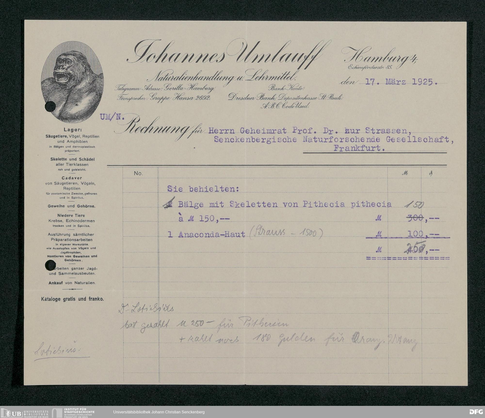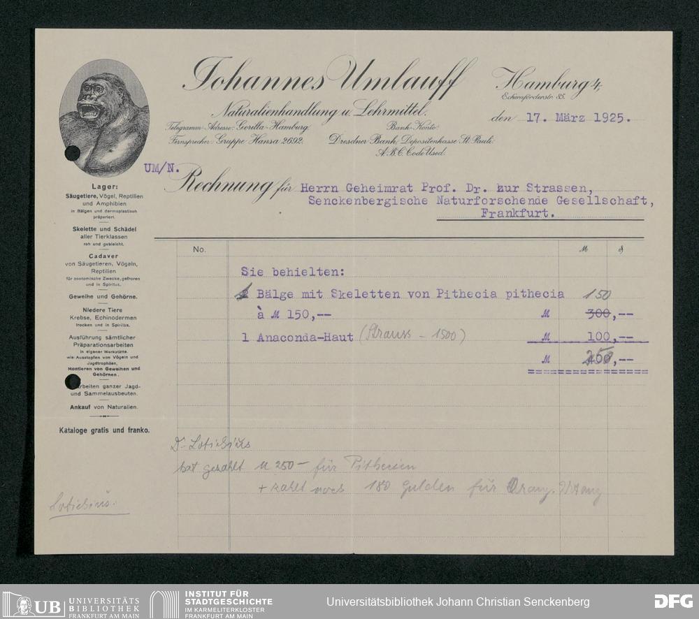 V176 Senckenberg Gesellschaft für Naturforschung, 189 - Ankauf zoologischer Exponate, Bd. 2