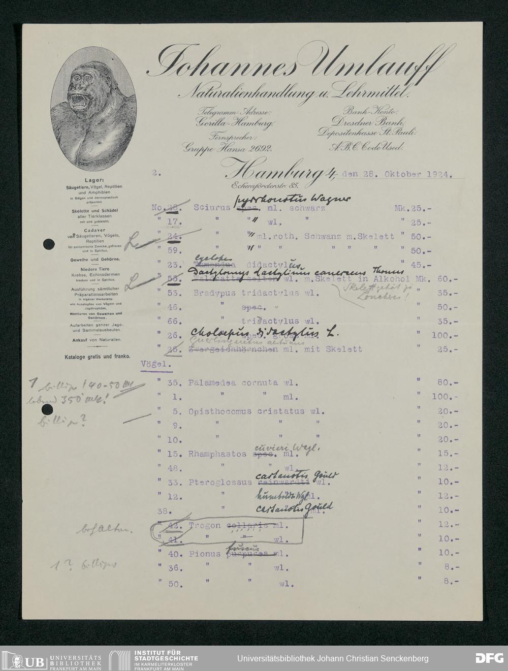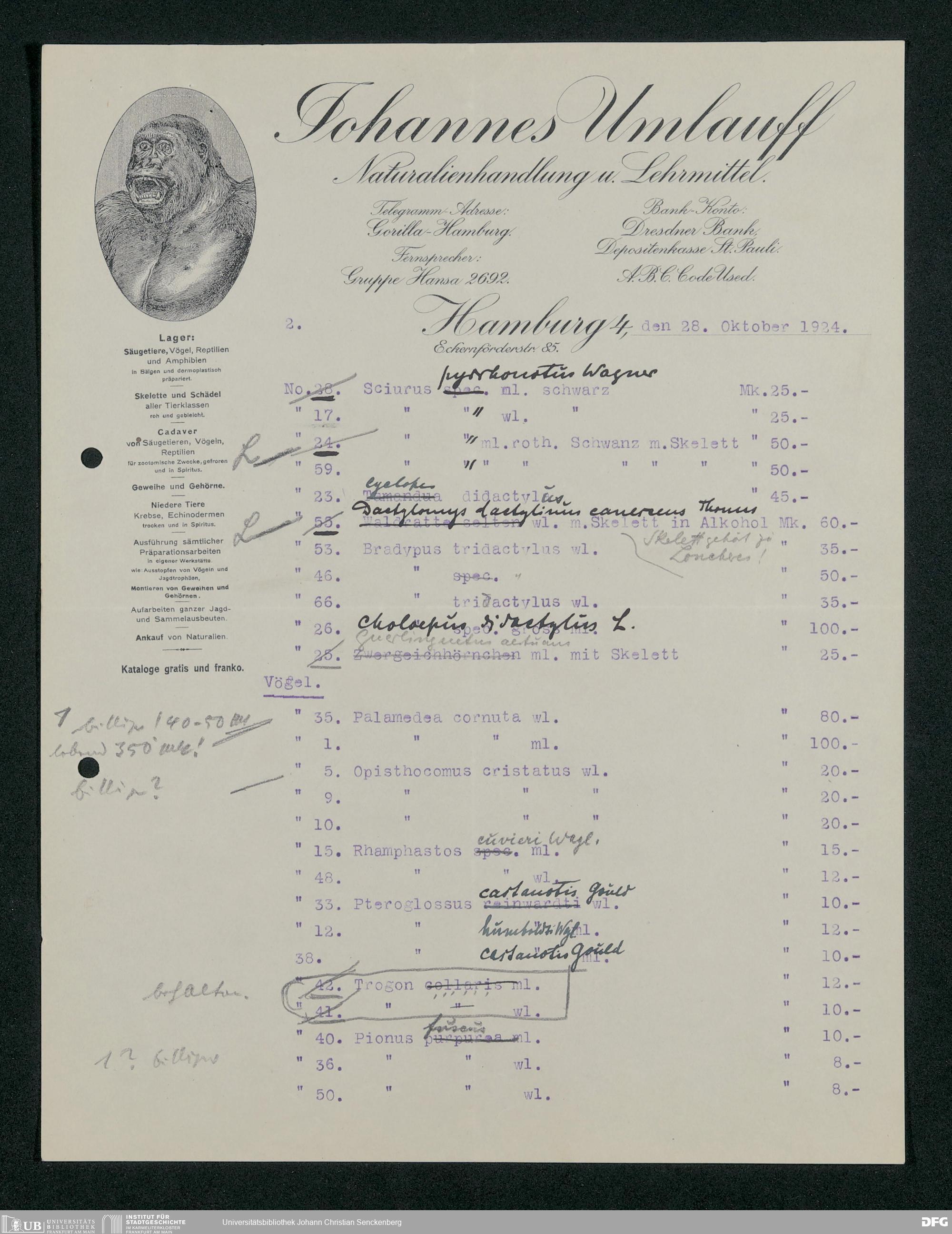 V176 Senckenberg Gesellschaft für Naturforschung, 189 - Ankauf zoologischer Exponate, Bd. 2