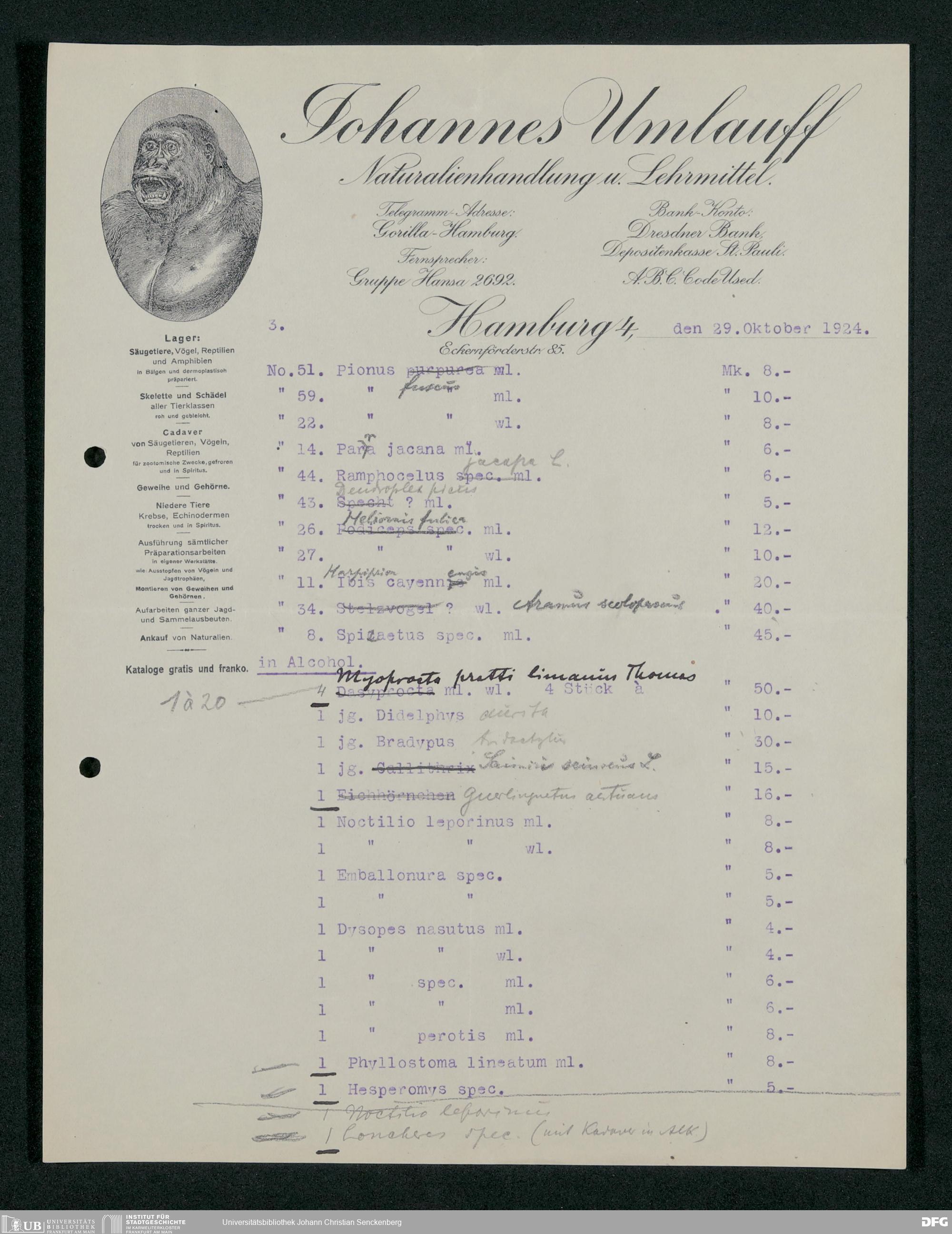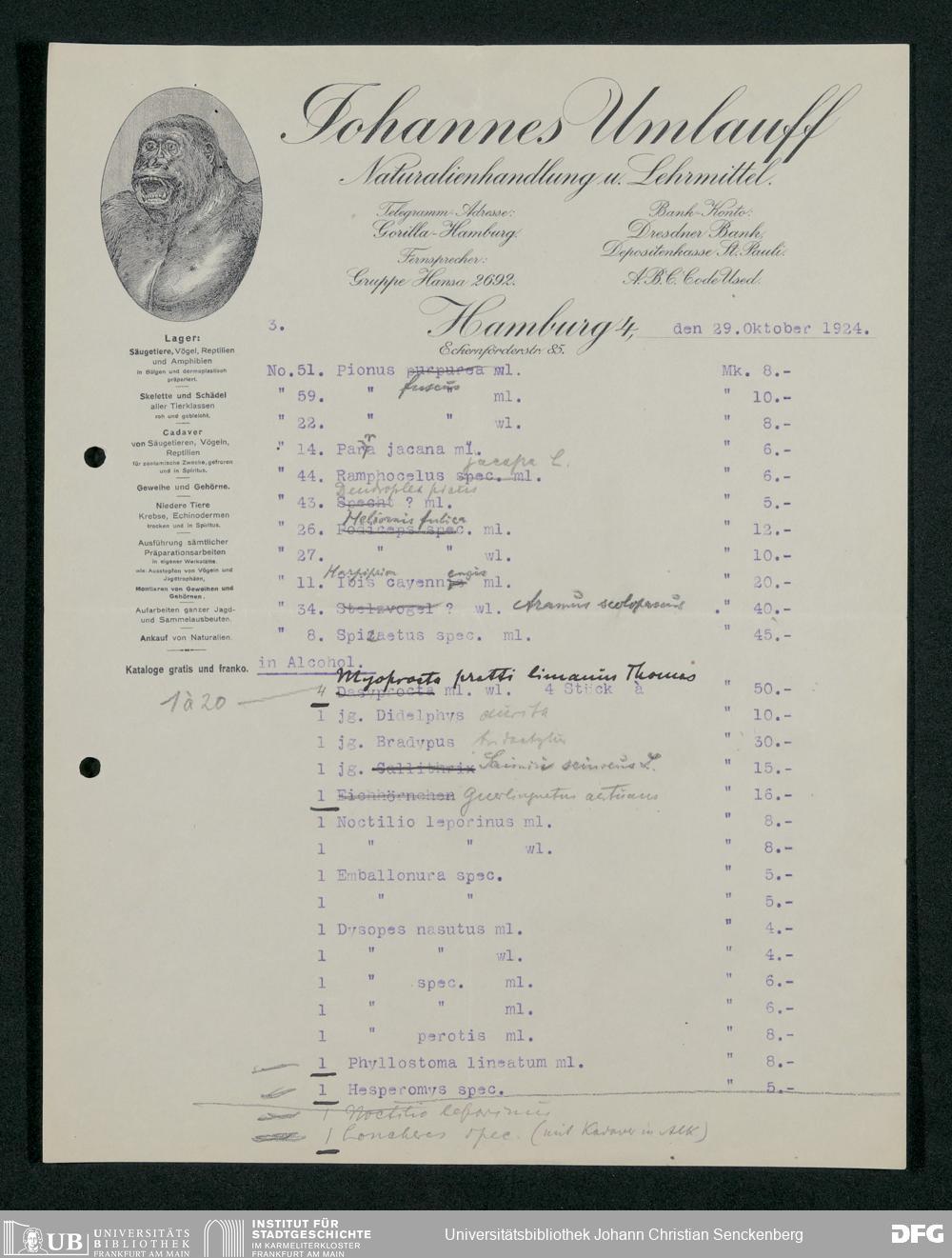 V176 Senckenberg Gesellschaft für Naturforschung, 189 - Ankauf zoologischer Exponate, Bd. 2
