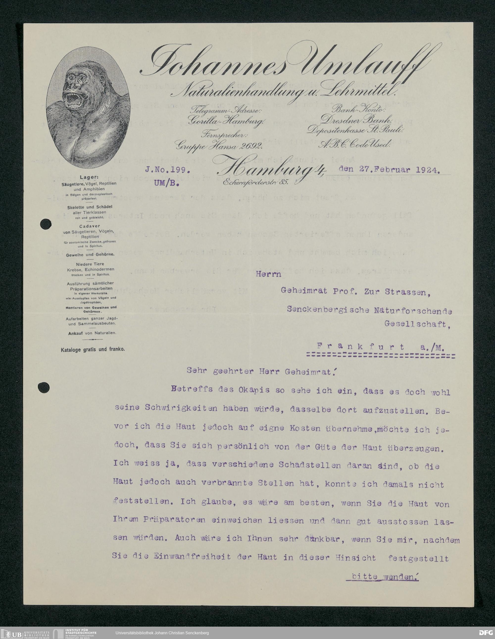 V176 Senckenberg Gesellschaft für Naturforschung, 189 - Ankauf zoologischer Exponate, Bd. 2