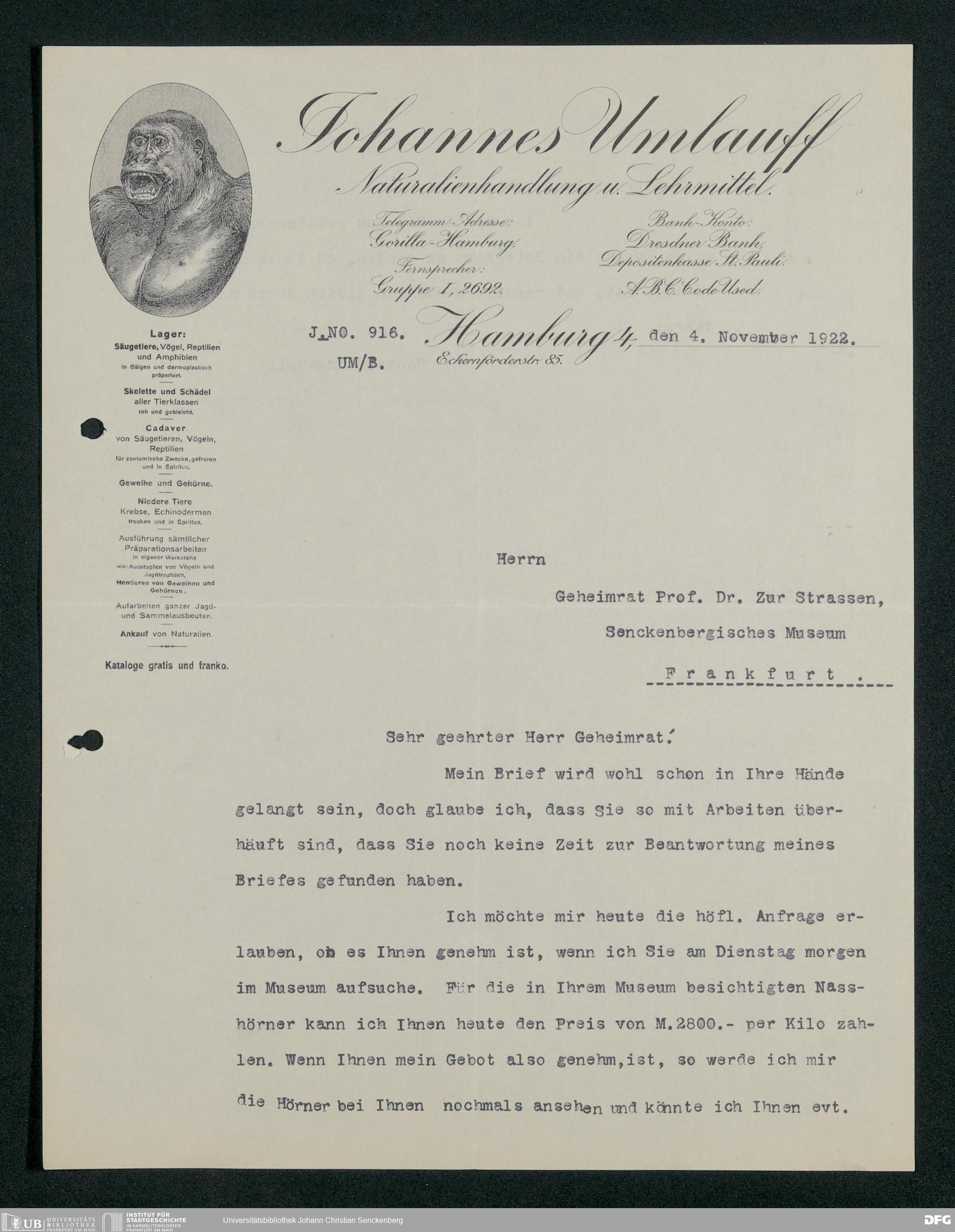 V176 Senckenberg Gesellschaft für Naturforschung, 189 - Ankauf zoologischer Exponate, Bd. 2