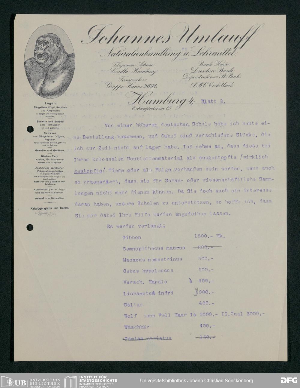 V176 Senckenberg Gesellschaft für Naturforschung, 189 - Ankauf zoologischer Exponate, Bd. 2
