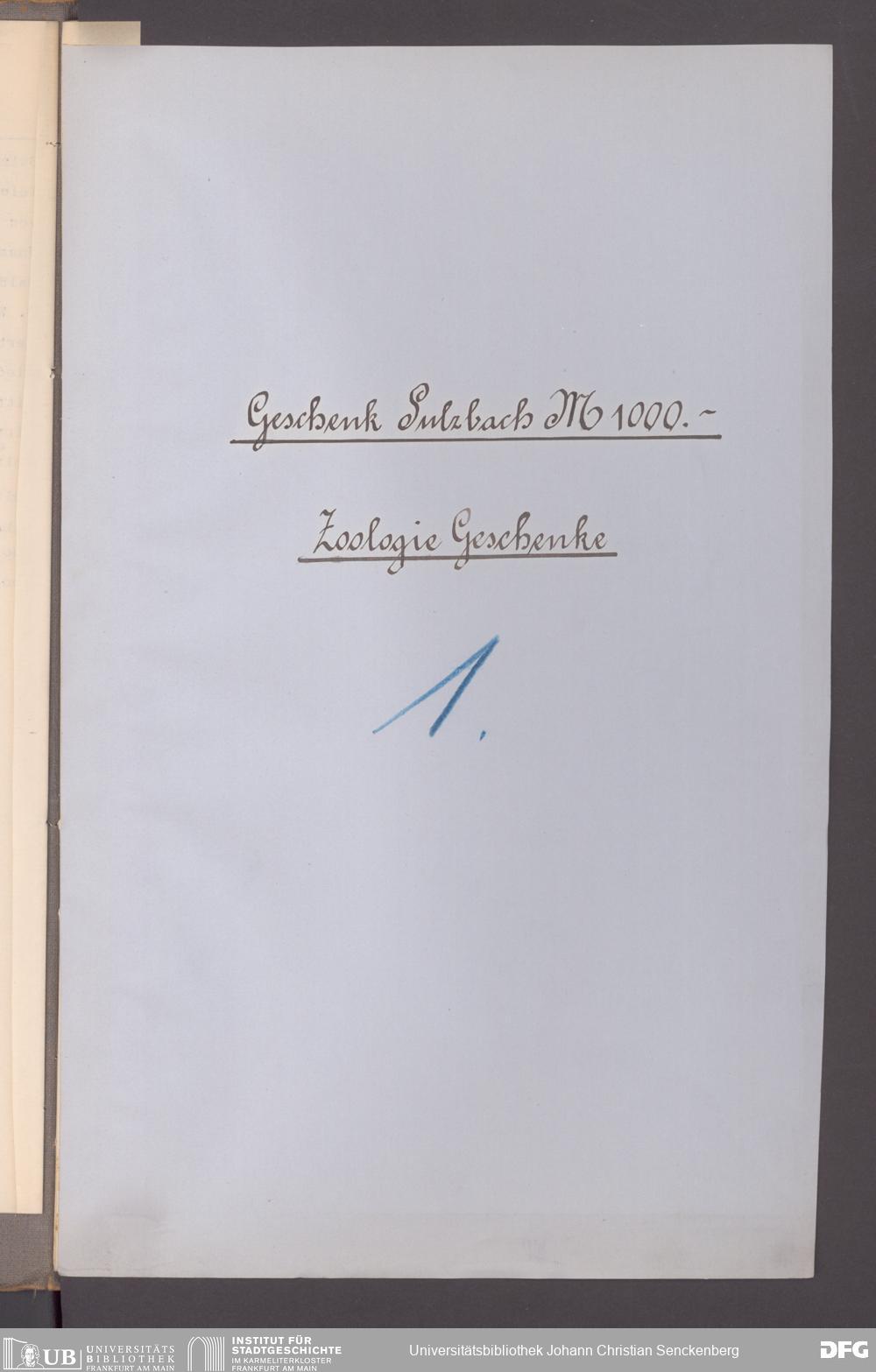 V176 Senckenberg Gesellschaft für Naturforschung, 194 - Geschenkzugang zoologischer Exponate, Bd. 1