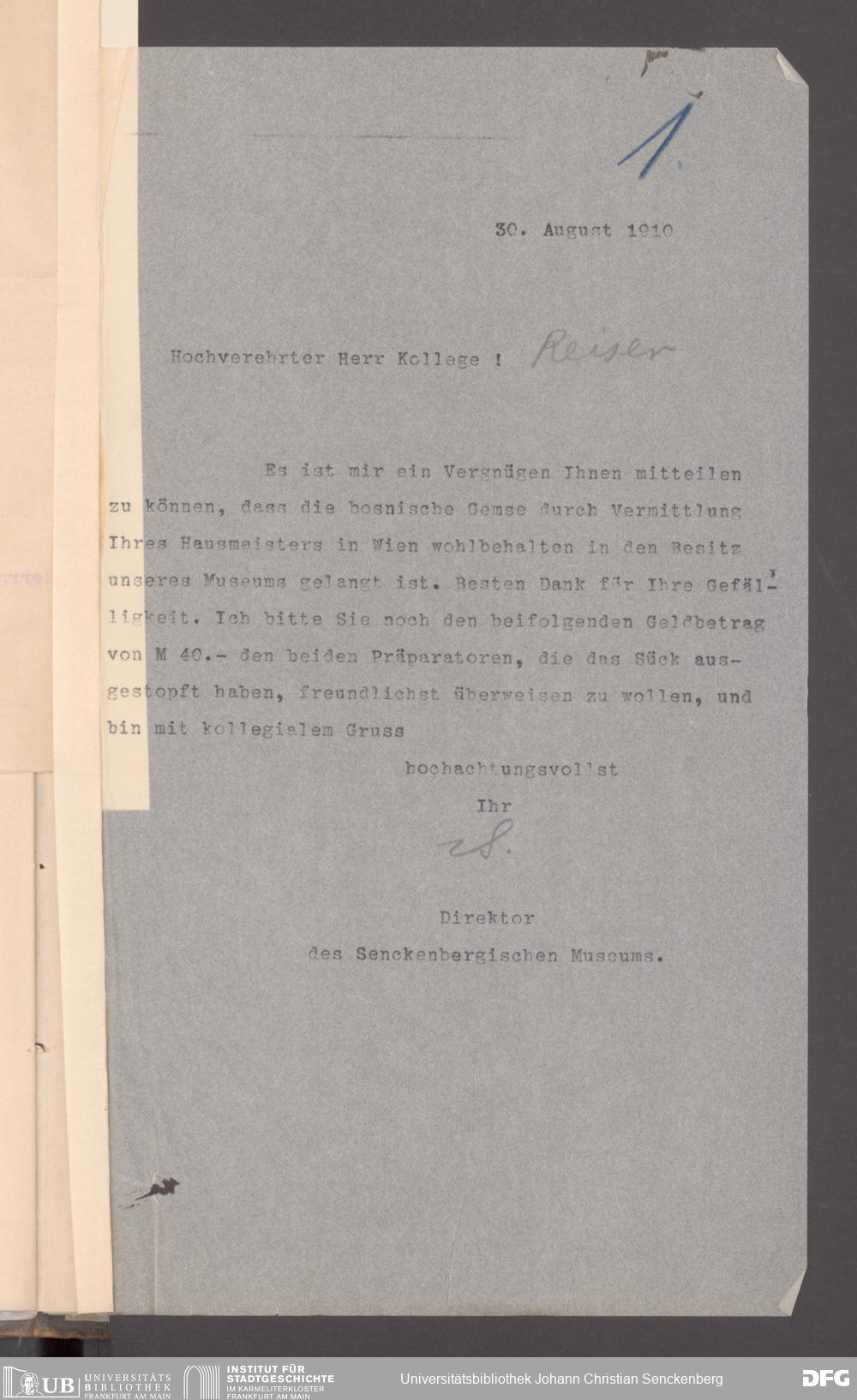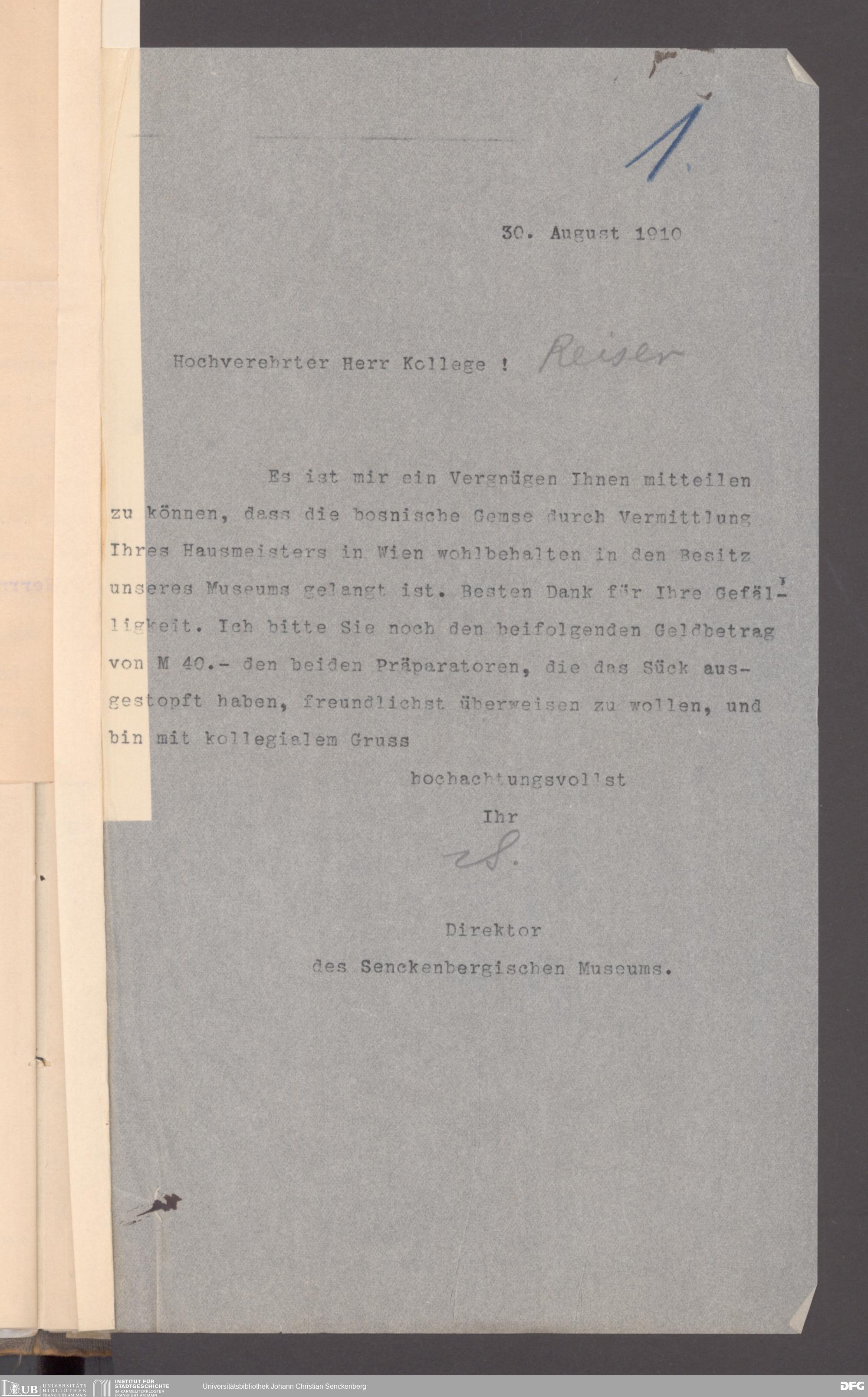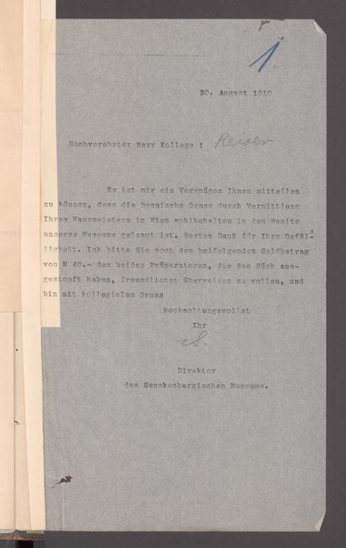 V176 Senckenberg Gesellschaft für Naturforschung, 194 - Geschenkzugang zoologischer Exponate, Bd. 1