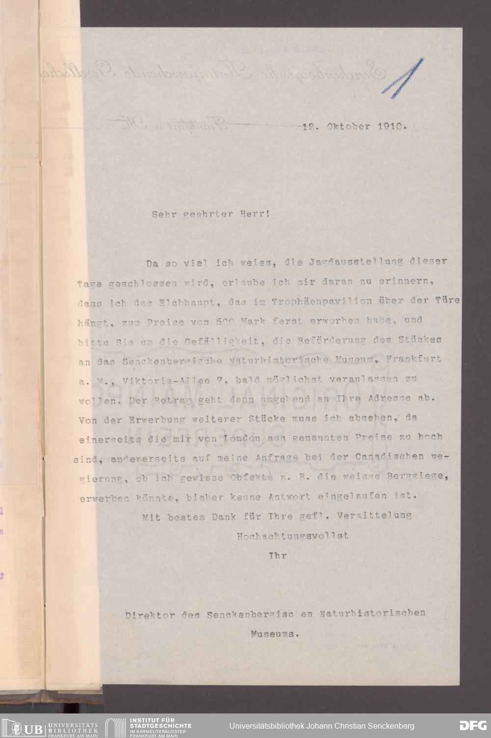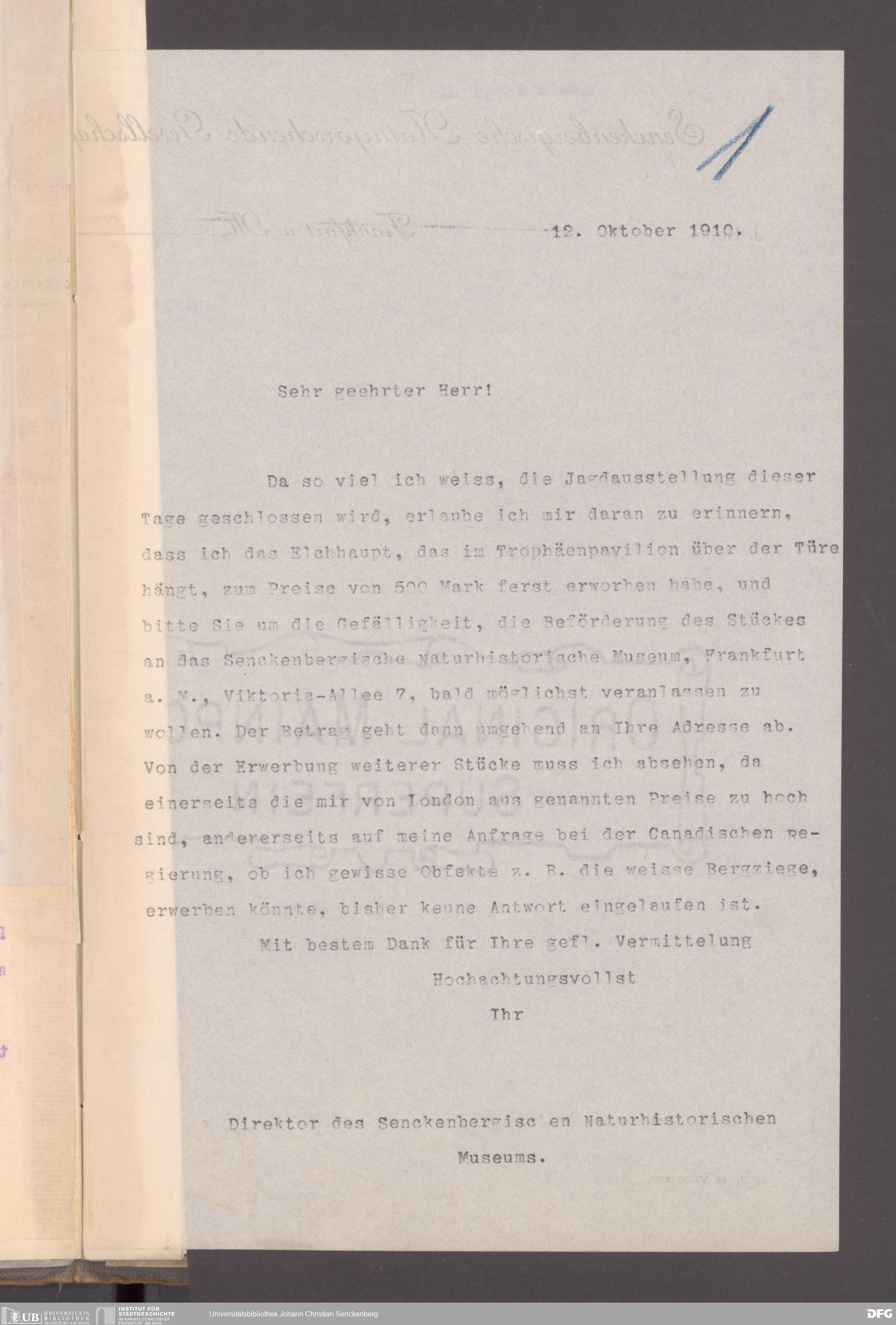 V176 Senckenberg Gesellschaft für Naturforschung, 194 - Geschenkzugang zoologischer Exponate, Bd. 1
