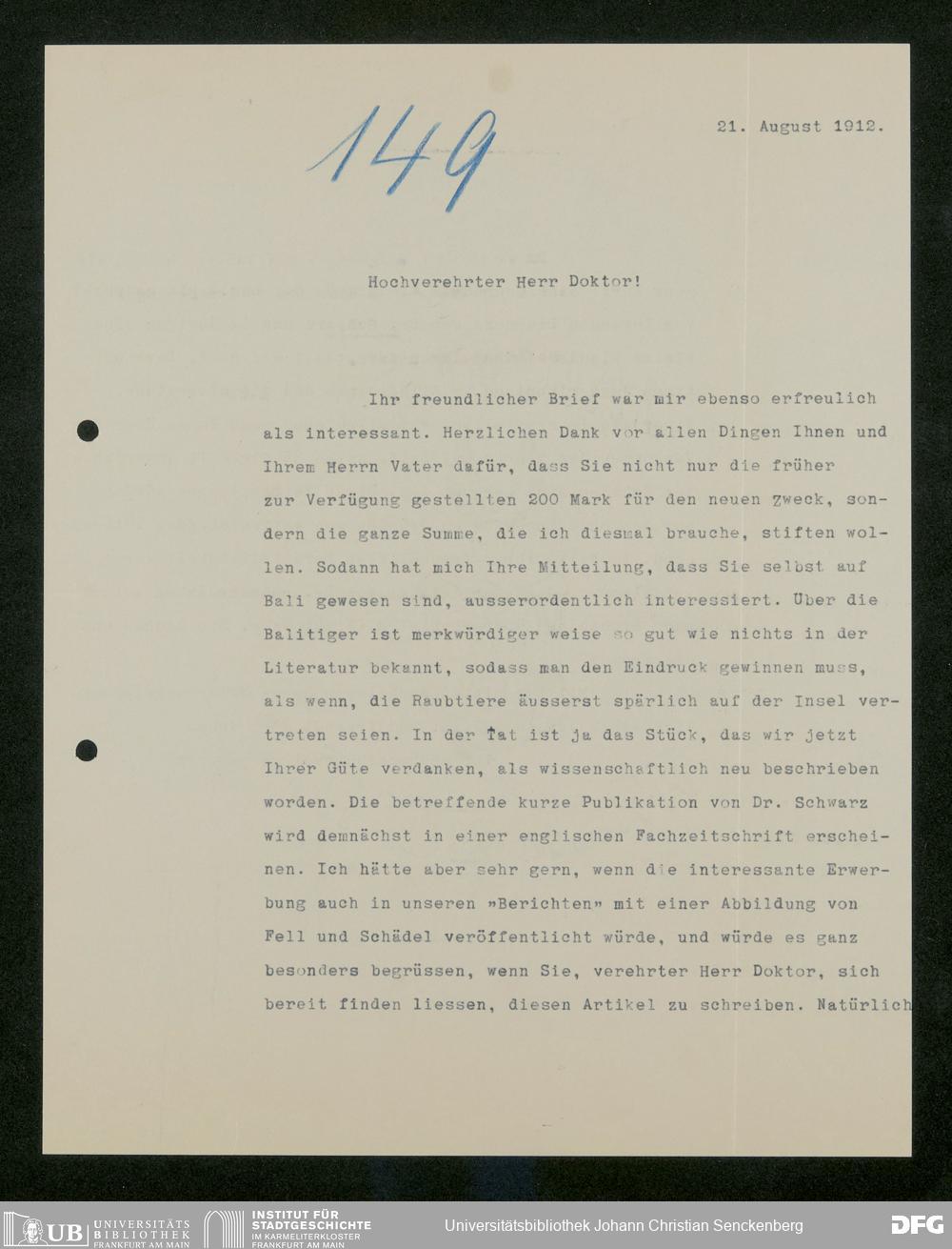 V176 Senckenberg Gesellschaft für Naturforschung, 194 - Geschenkzugang zoologischer Exponate, Bd. 1