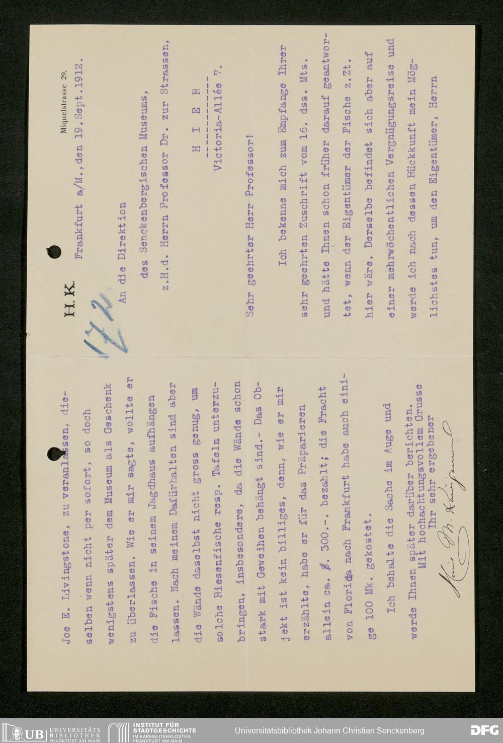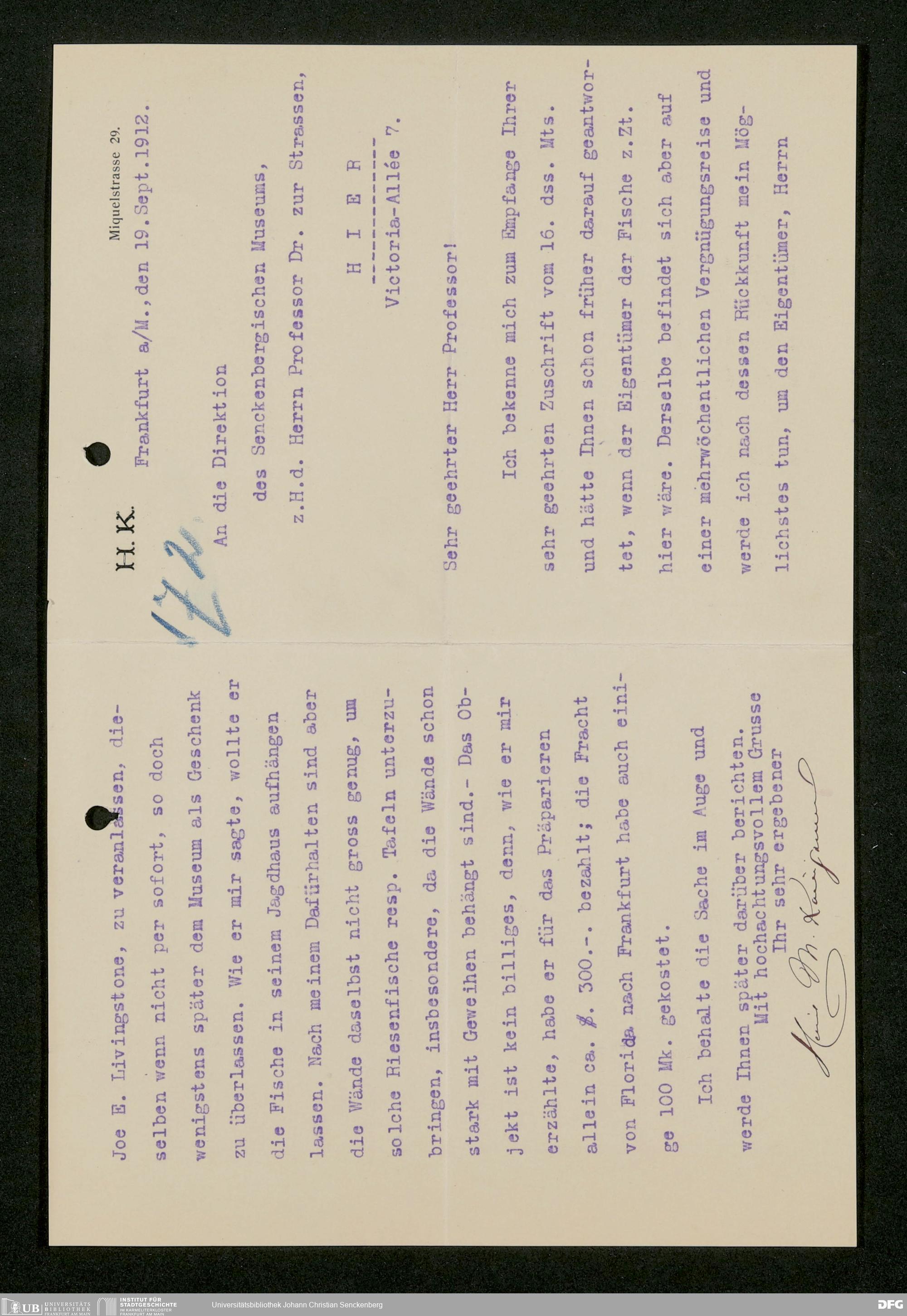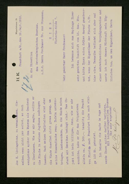 V176 Senckenberg Gesellschaft für Naturforschung, 194 - Geschenkzugang zoologischer Exponate, Bd. 1