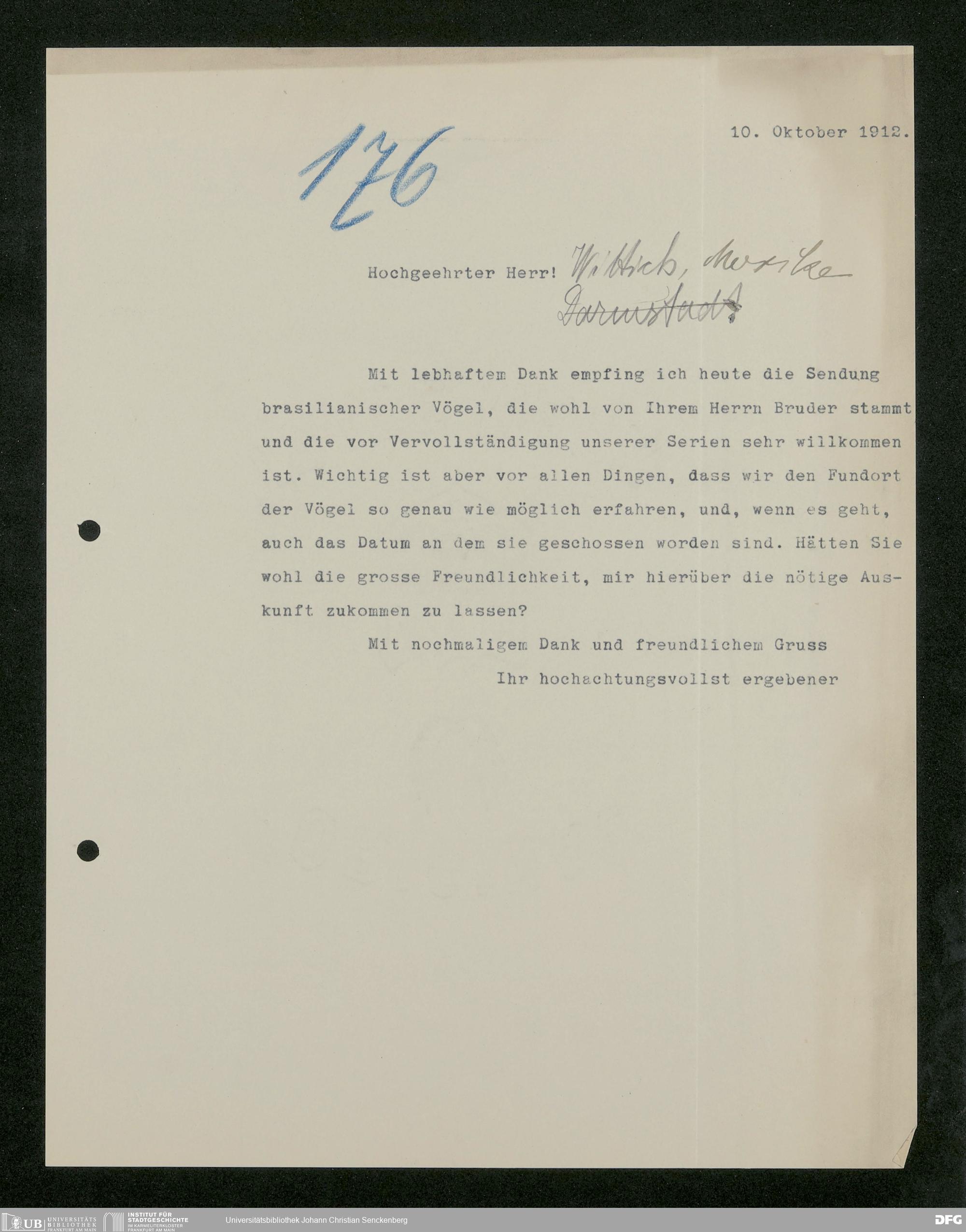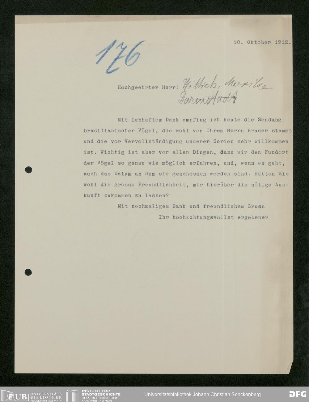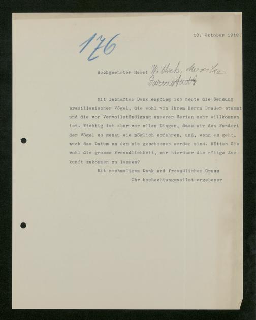 V176 Senckenberg Gesellschaft für Naturforschung, 194 - Geschenkzugang zoologischer Exponate, Bd. 1