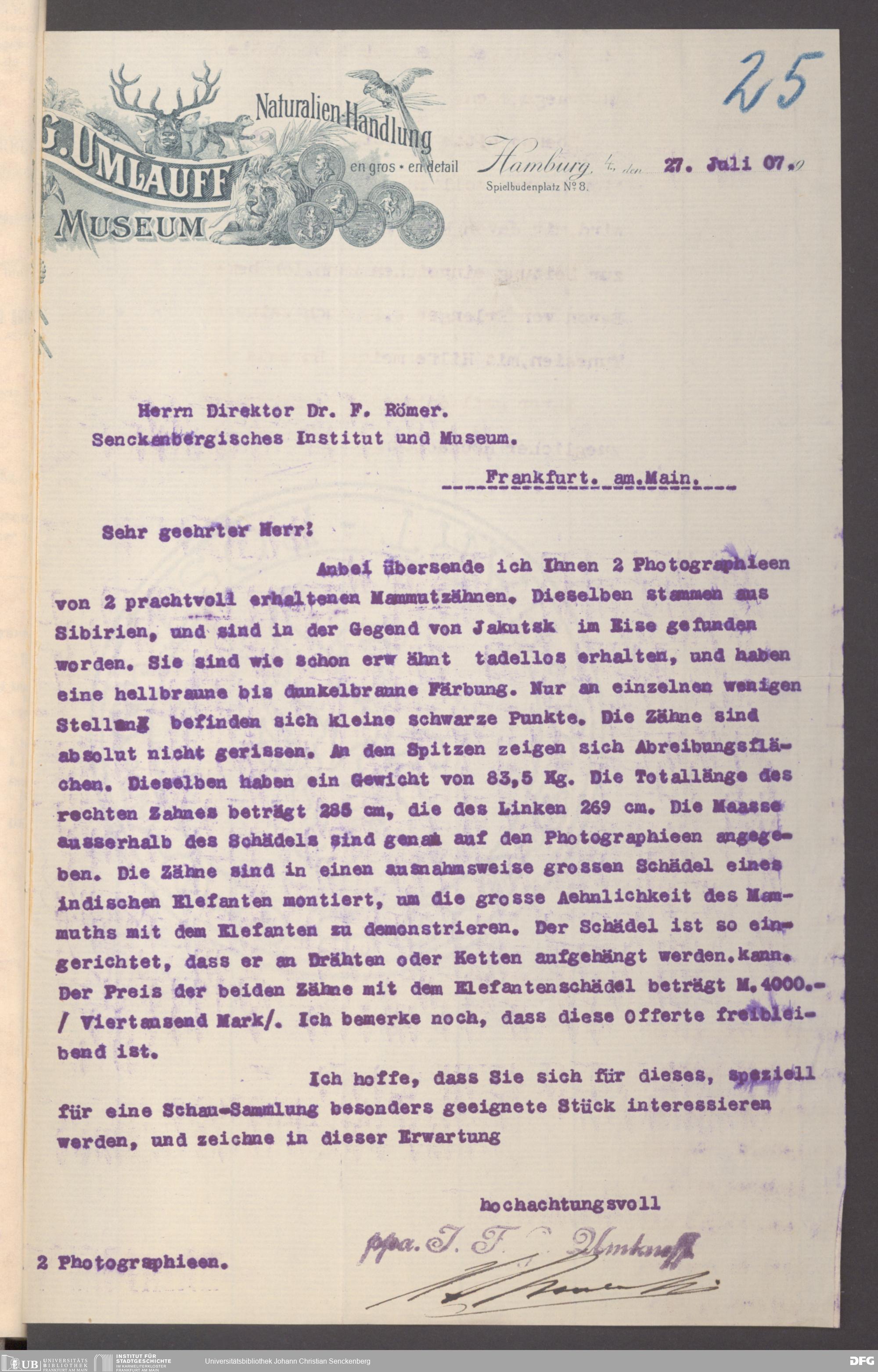 V176 Senckenberg Gesellschaft für Naturforschung, 196 - Angebotene zoologische Exponate, Bd. 1