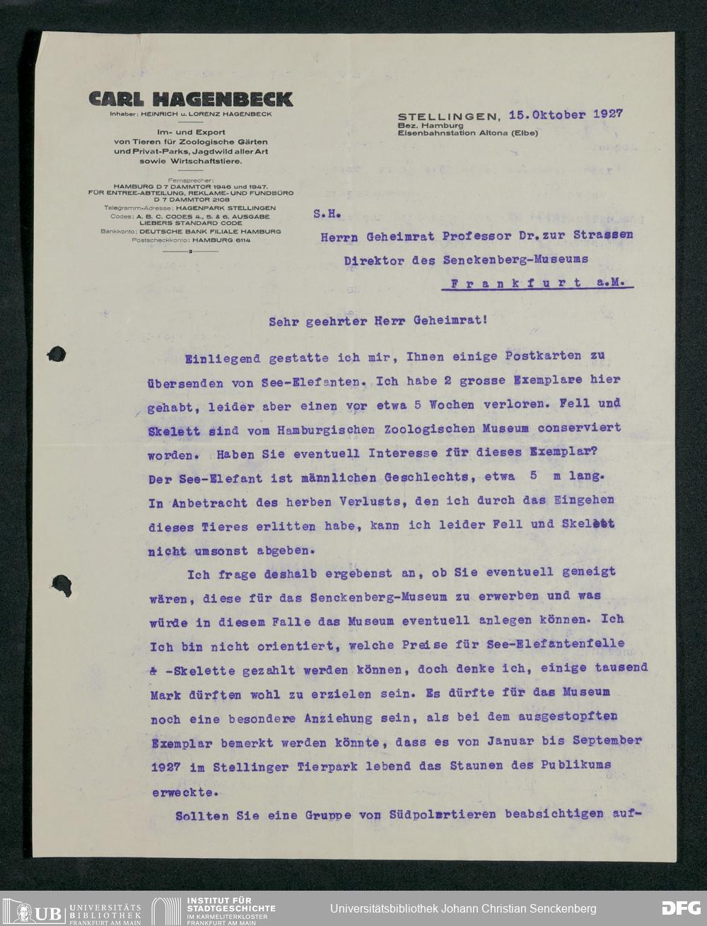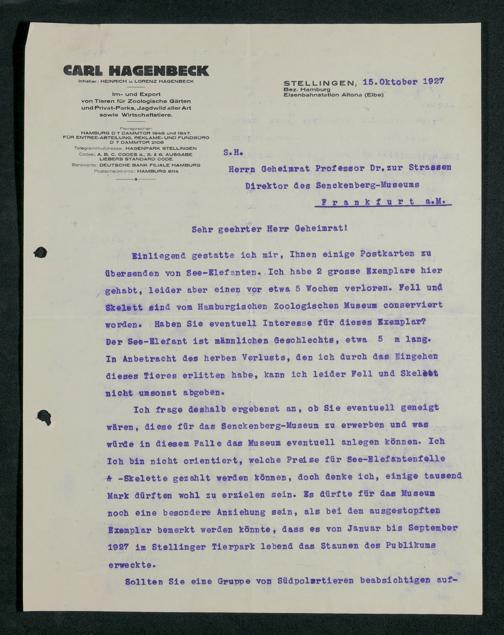 V176 Senckenberg Gesellschaft für Naturforschung, 197 - Ankauf von Exponaten bei Carl Hagenbeck