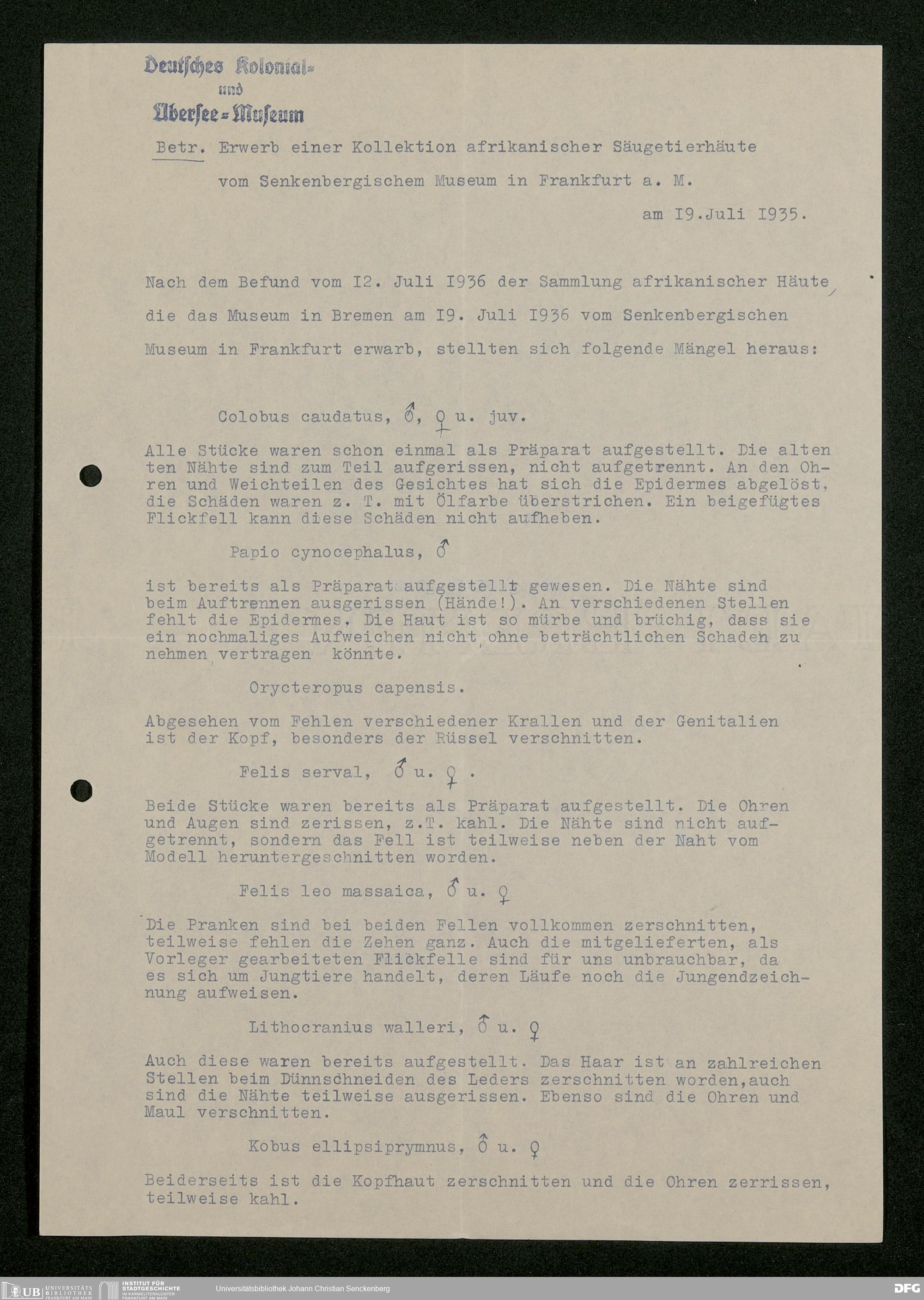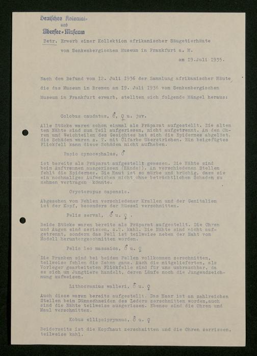 V176 Senckenberg Gesellschaft für Naturforschung, 236 - Ankauf und Tausch zoologischer Exponate, Bd. 5