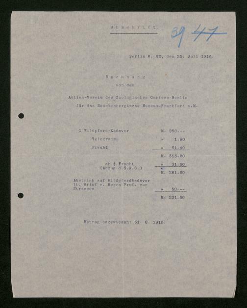 V176 Senckenberg Gesellschaft für Naturforschung, 236 - Ankauf und Tausch zoologischer Exponate, Bd. 5