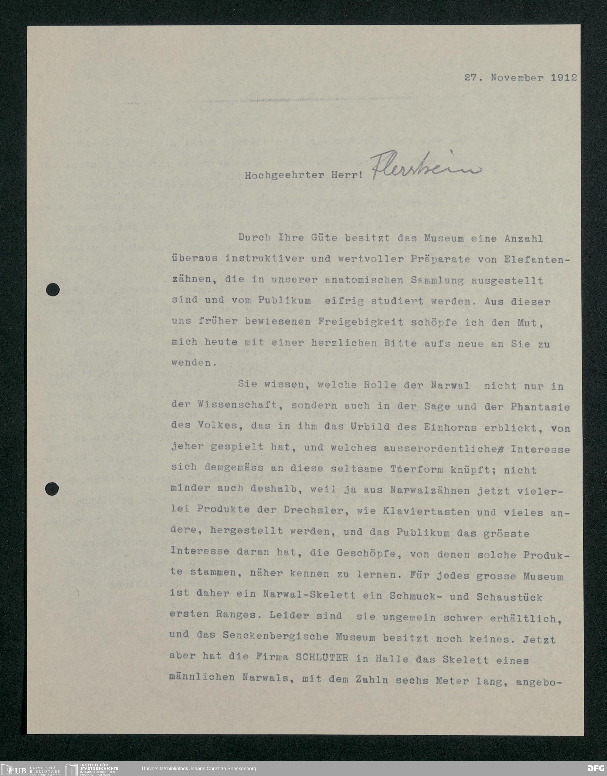V176 Senckenberg Gesellschaft für Naturforschung, 241 - Bitten um Spenden zum Kauf von Sammlungsobjekten