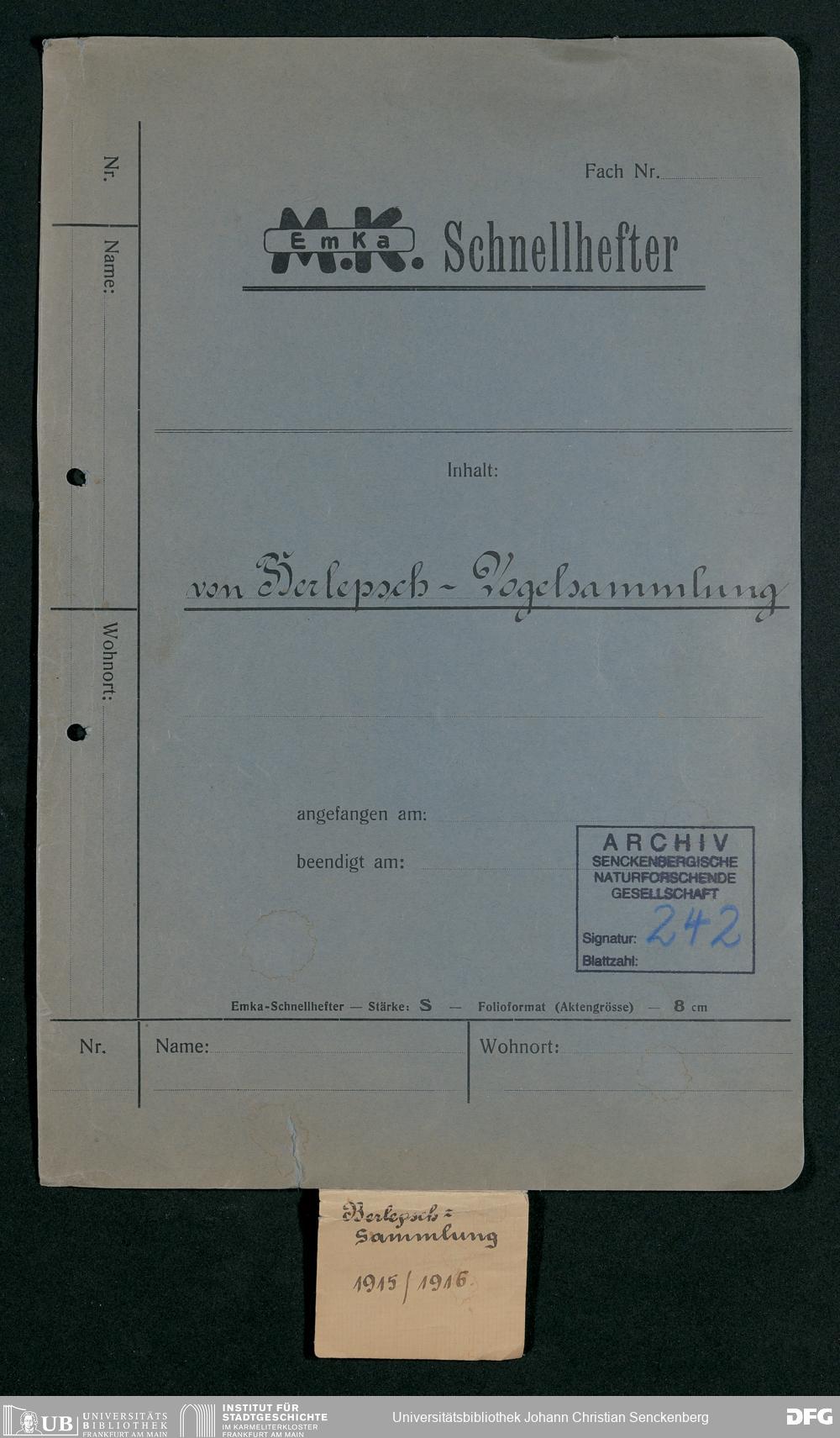 V176 Senckenberg Gesellschaft für Naturforschung, 242 - Ankauf der Vogelsammlung des Grafen Hans von Berlepsch