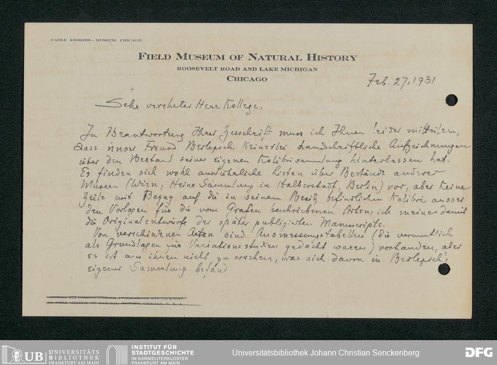 V176 Senckenberg Gesellschaft für Naturforschung, 242 - Ankauf der Vogelsammlung des Grafen Hans von Berlepsch
