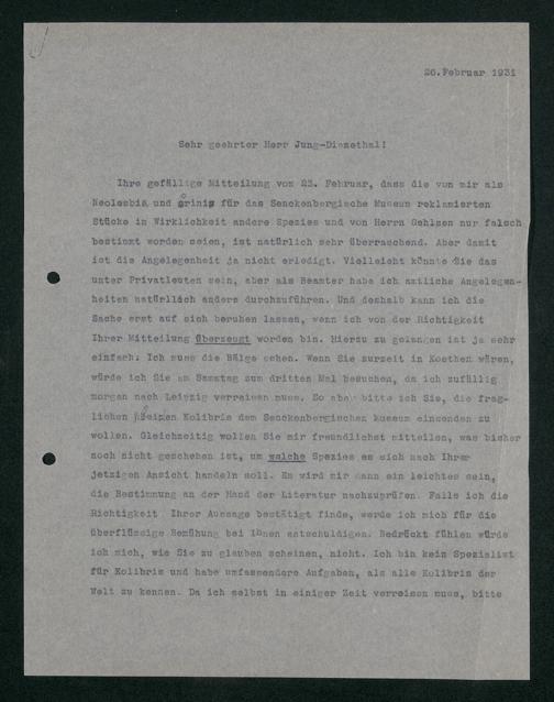 V176 Senckenberg Gesellschaft für Naturforschung, 242 - Ankauf der Vogelsammlung des Grafen Hans von Berlepsch