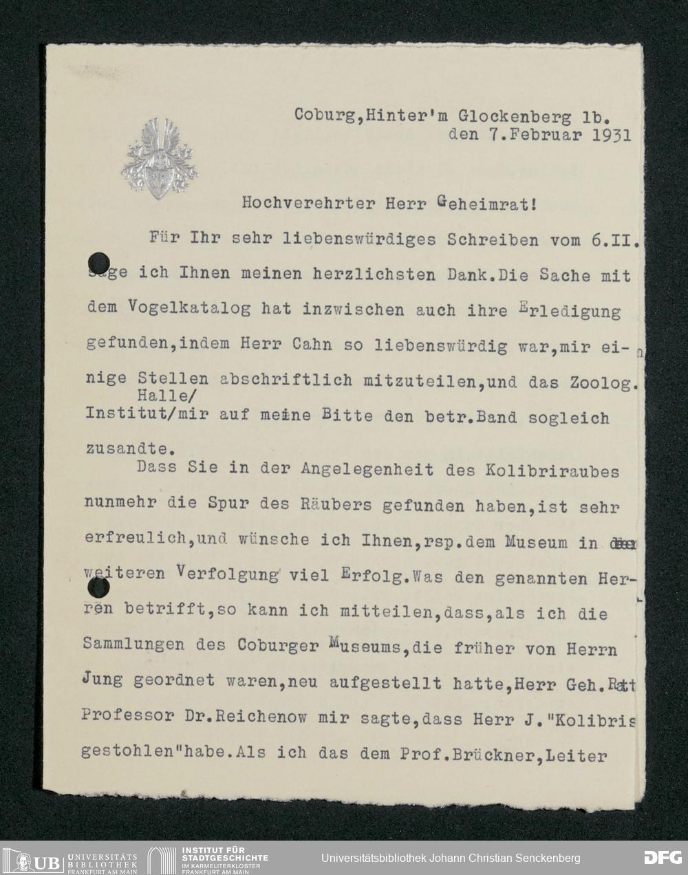 V176 Senckenberg Gesellschaft für Naturforschung, 242 - Ankauf der Vogelsammlung des Grafen Hans von Berlepsch