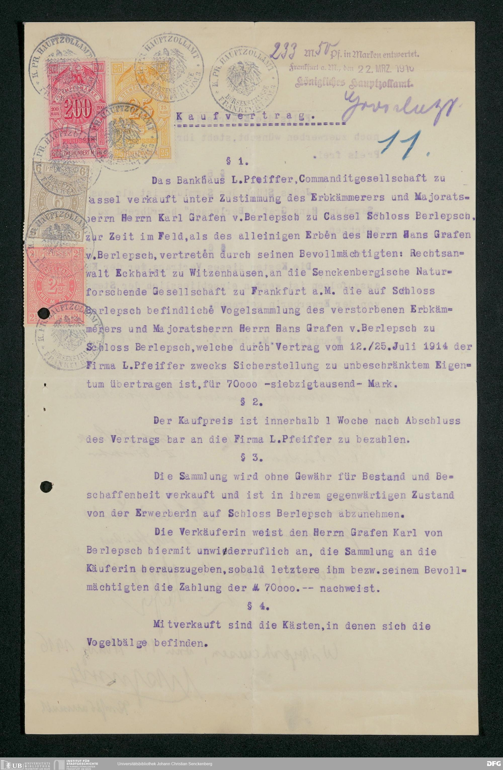 V176 Senckenberg Gesellschaft für Naturforschung, 242 - Ankauf der Vogelsammlung des Grafen Hans von Berlepsch