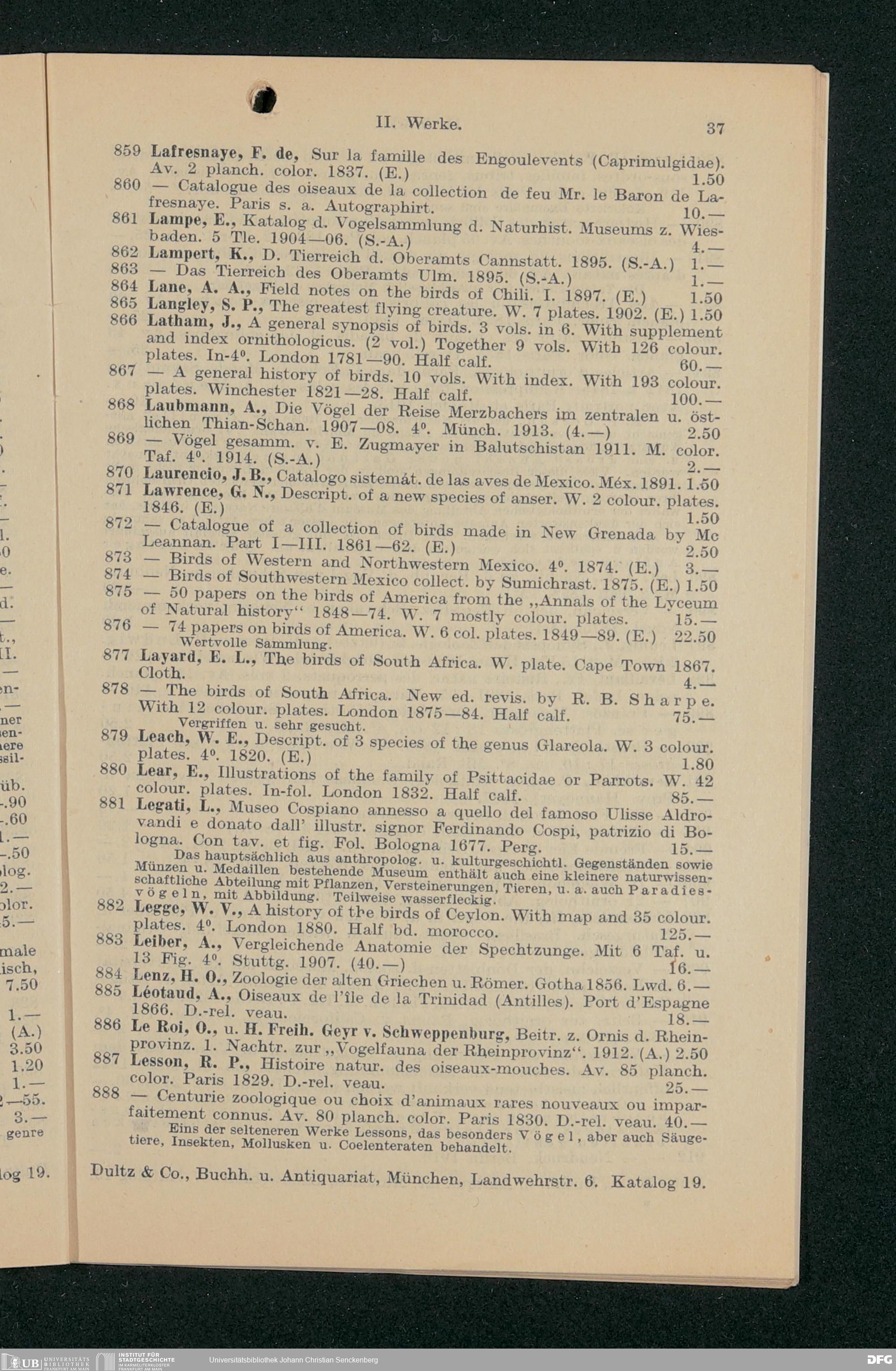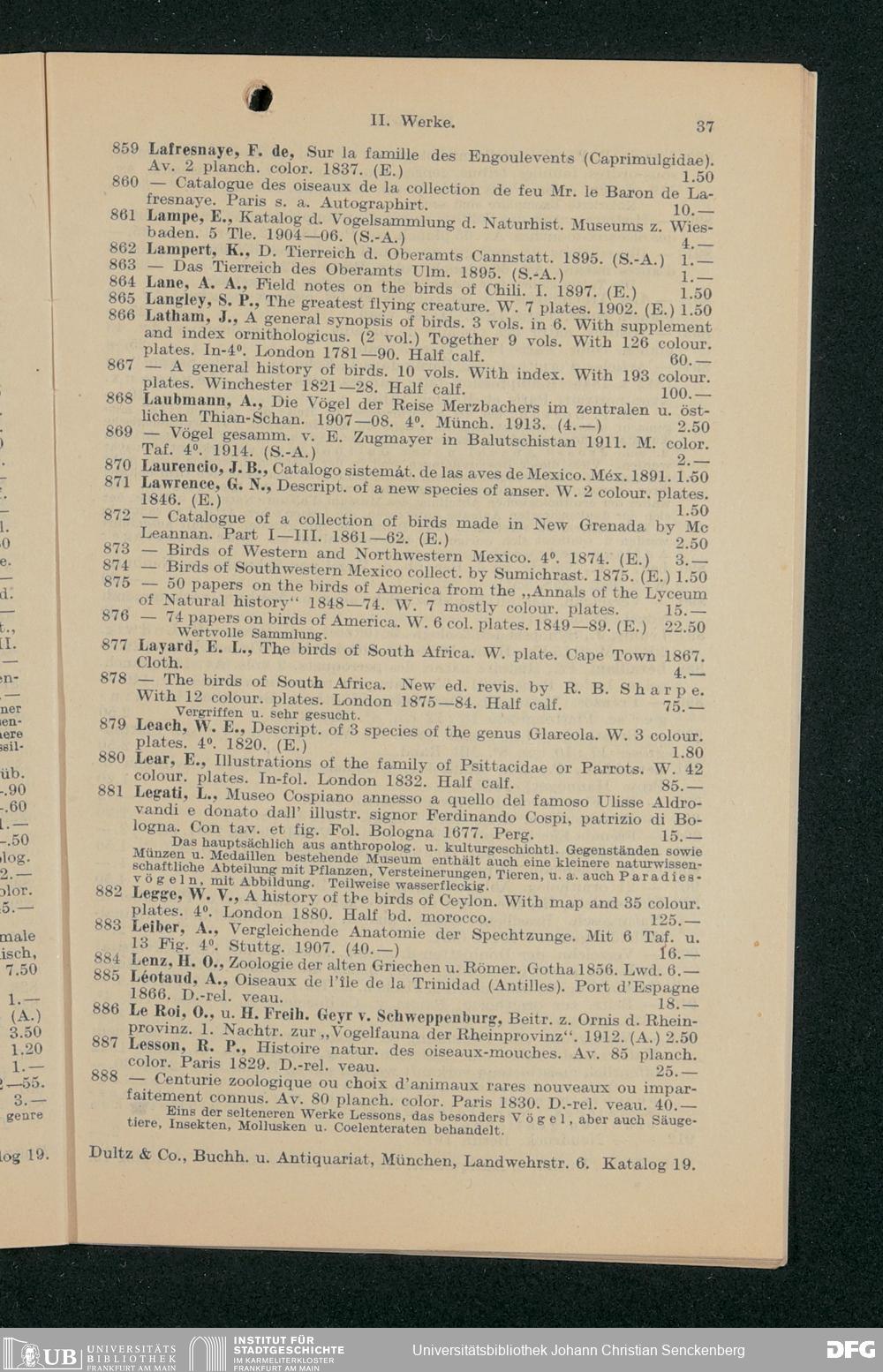 V176 Senckenberg Gesellschaft für Naturforschung, 242 - Ankauf der Vogelsammlung des Grafen Hans von Berlepsch