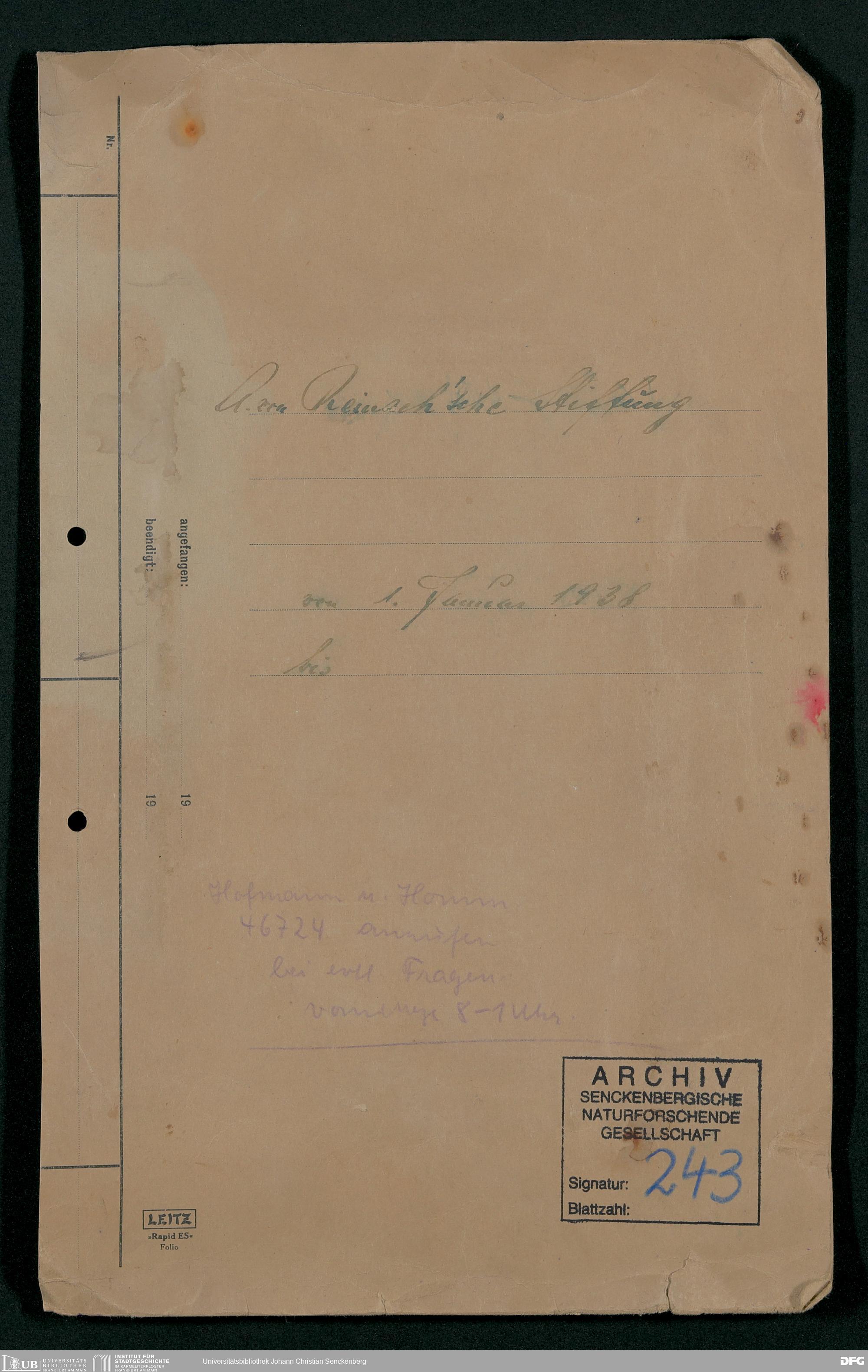 V176 Senckenberg Gesellschaft für Naturforschung, 243 - Verwaltung des Kapitalvermögens der Albert von Reinach-Stiftung