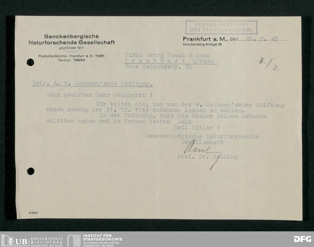 V176 Senckenberg Gesellschaft für Naturforschung, 243 - Verwaltung des Kapitalvermögens der Albert von Reinach-Stiftung