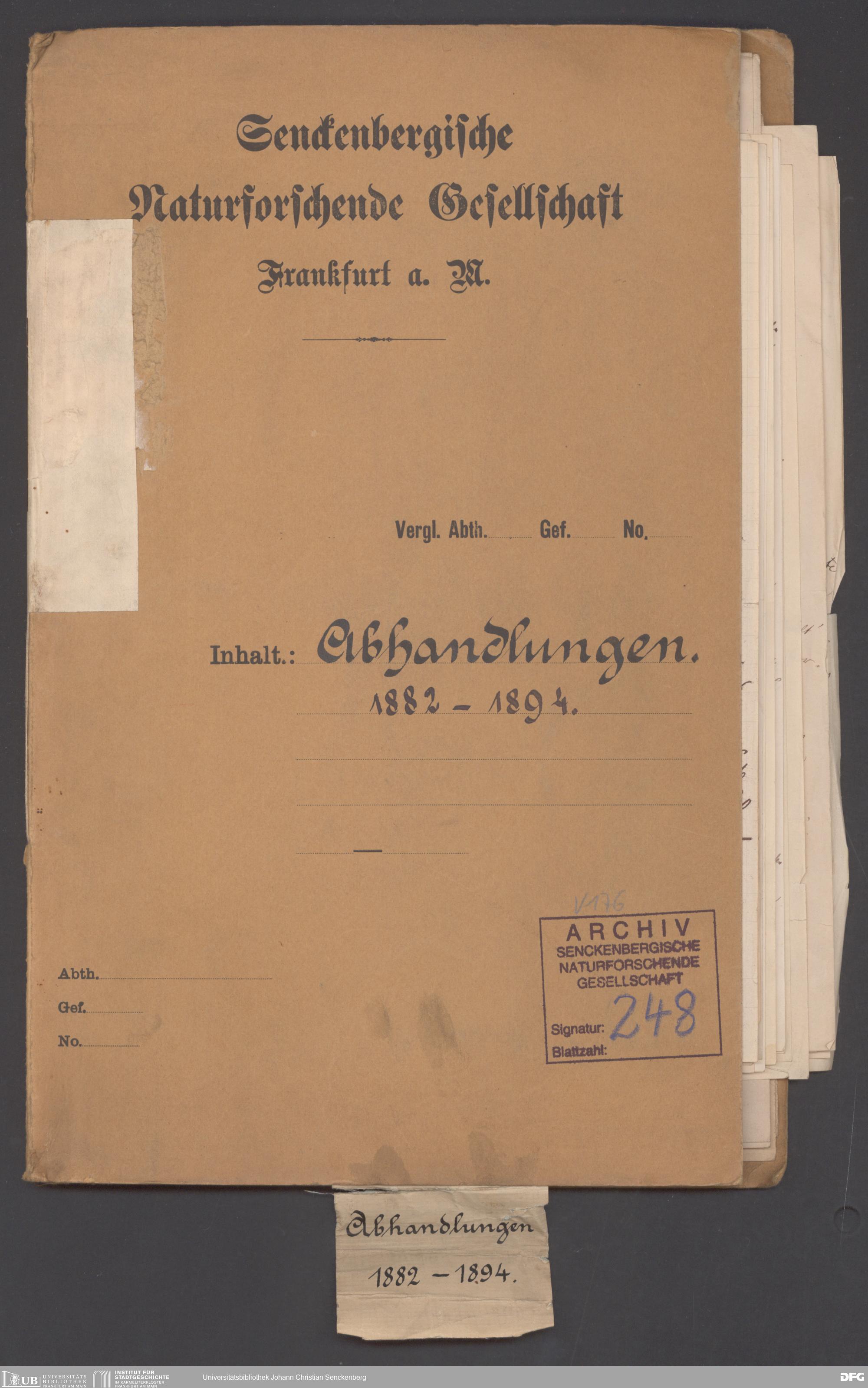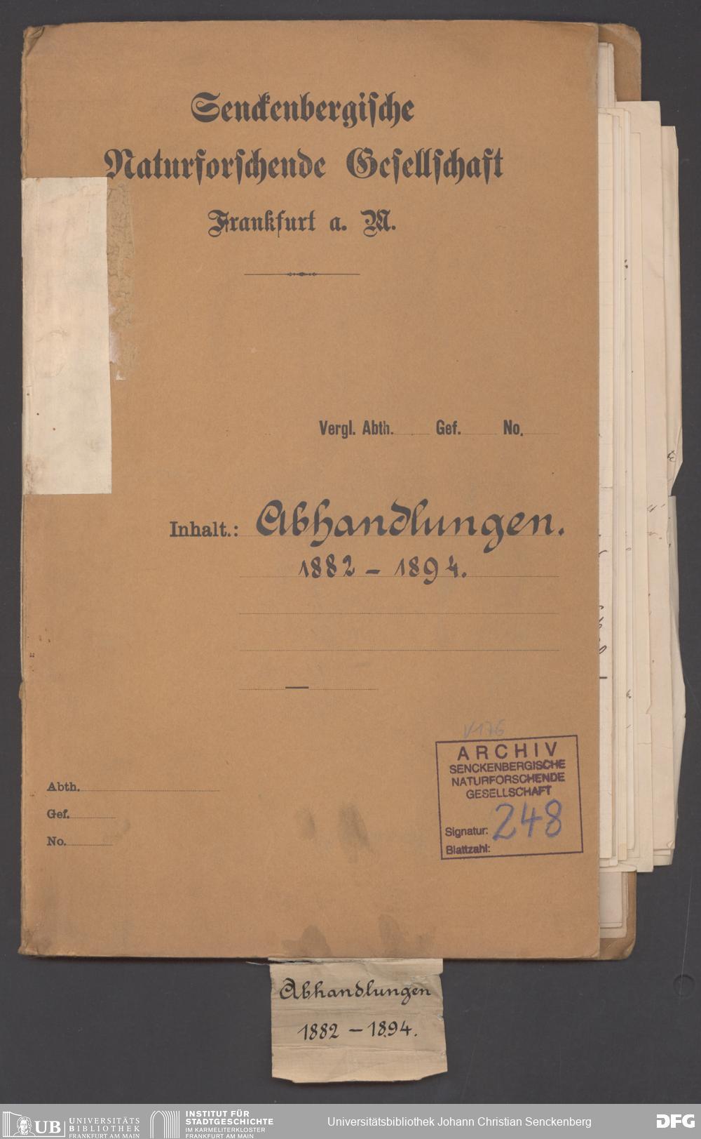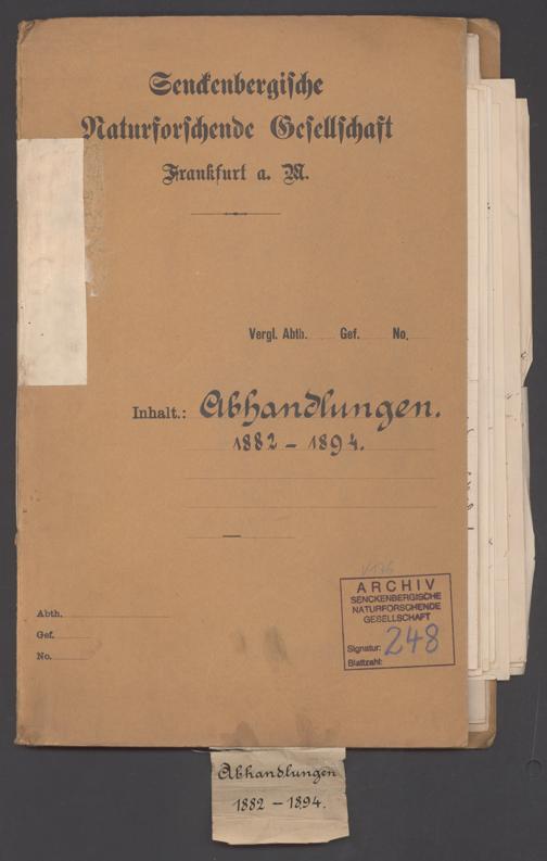 V176 Senckenberg Gesellschaft für Naturforschung, 248 - Herausgabe der "Abhandlungen der Senckenbergischen Naturforschenden Gesellschaft", Bd. 2