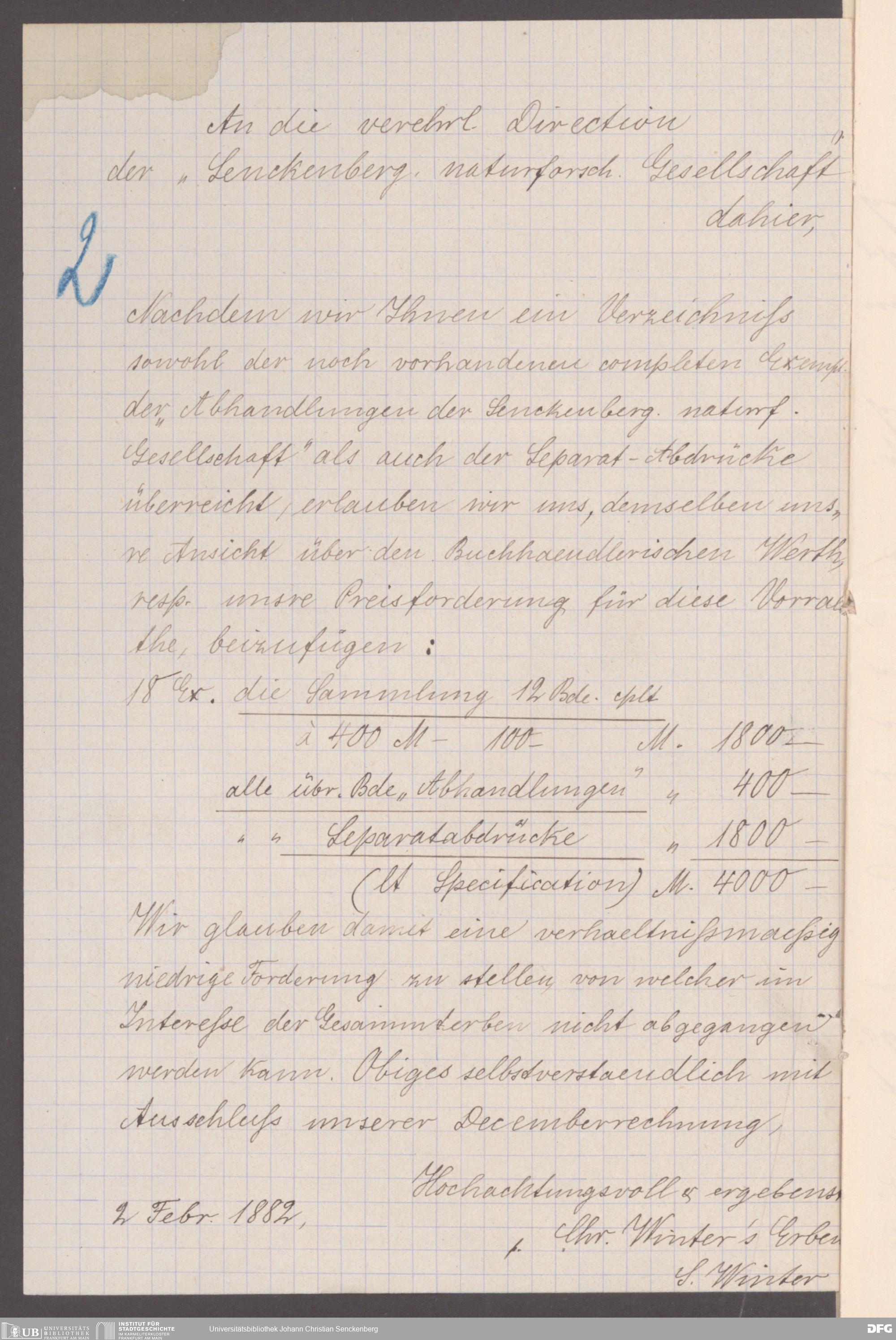 V176 Senckenberg Gesellschaft für Naturforschung, 248 - Herausgabe der "Abhandlungen der Senckenbergischen Naturforschenden Gesellschaft", Bd. 2