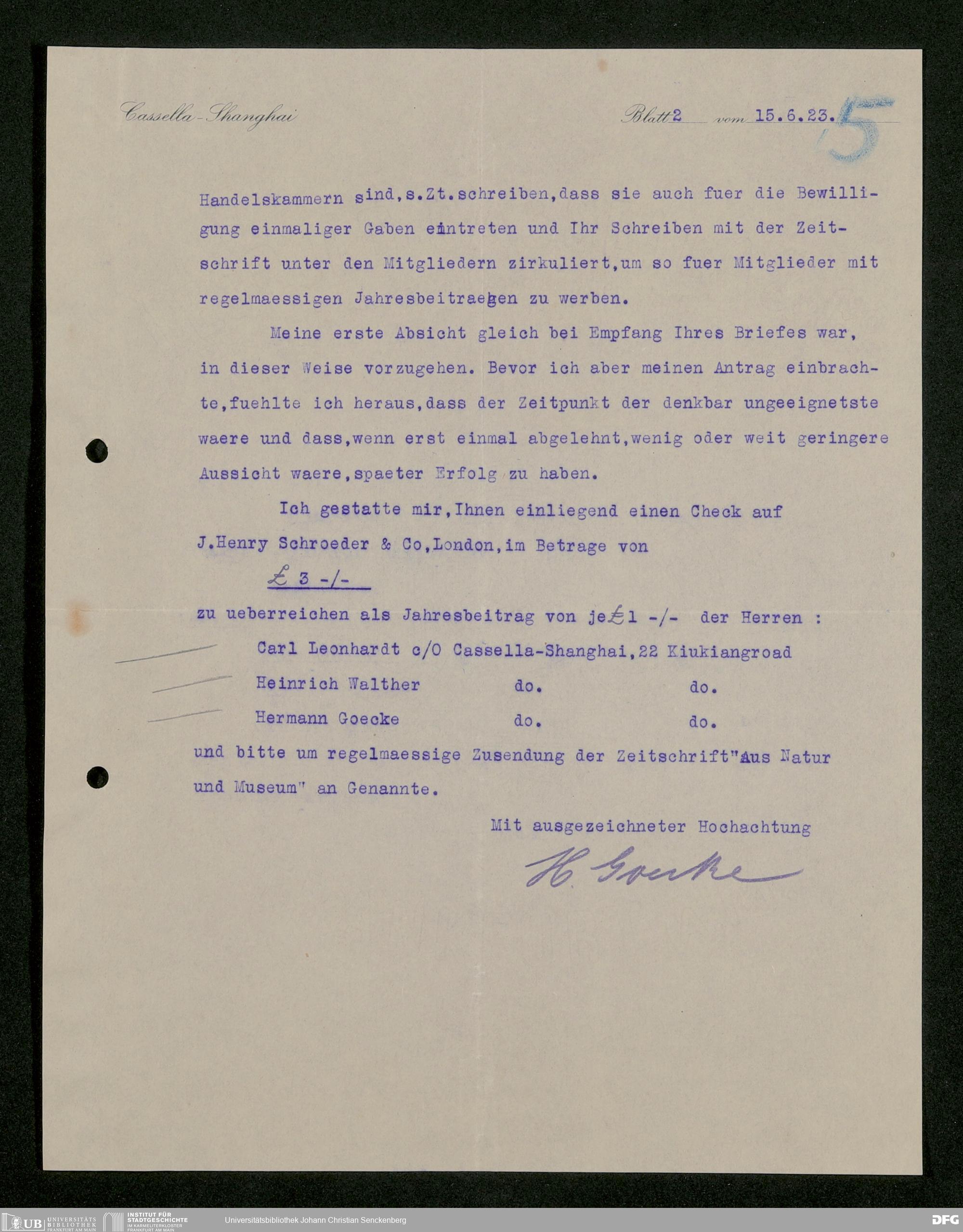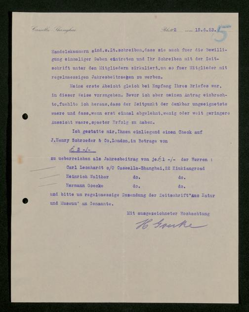 V176 Senckenberg Gesellschaft für Naturforschung, 529 - Mitgliederwerbung unter Auslandsdeutschen in Ostasien