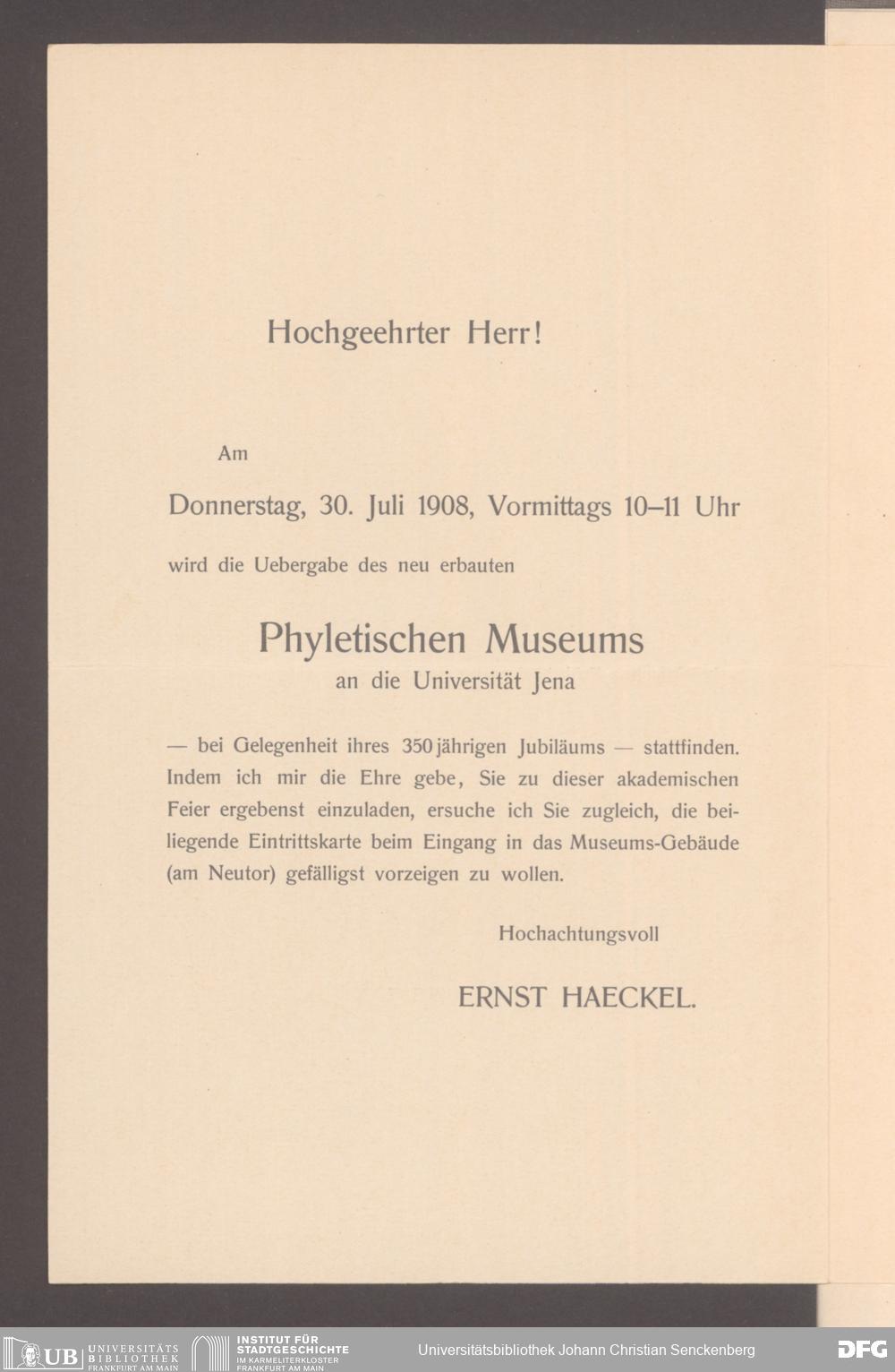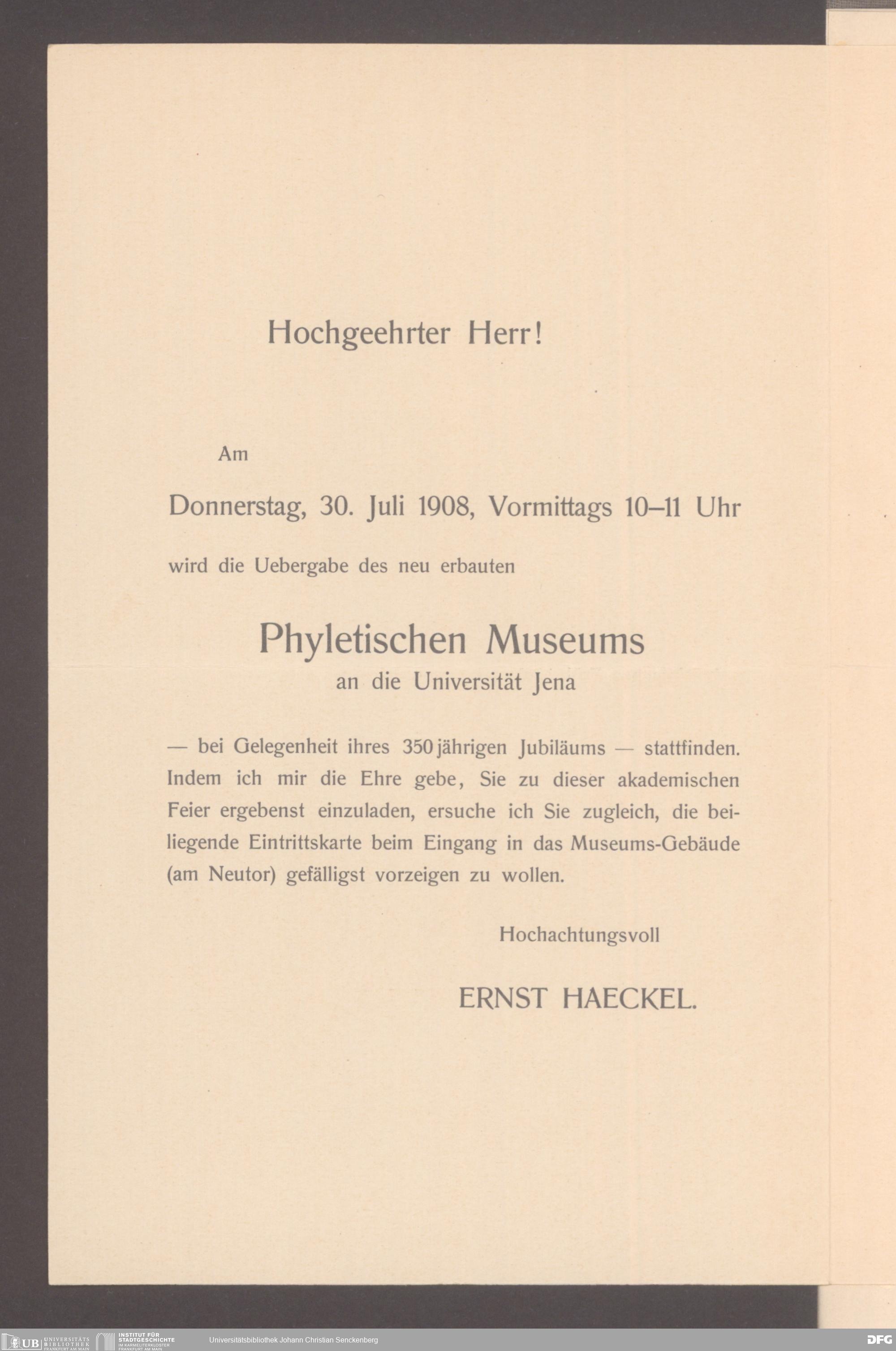 V176 Senckenberg Gesellschaft für Naturforschung, 254 - An den Direktor des Senckenbergmuseums gerichtete Einladungen zu offiziellen Anlässen