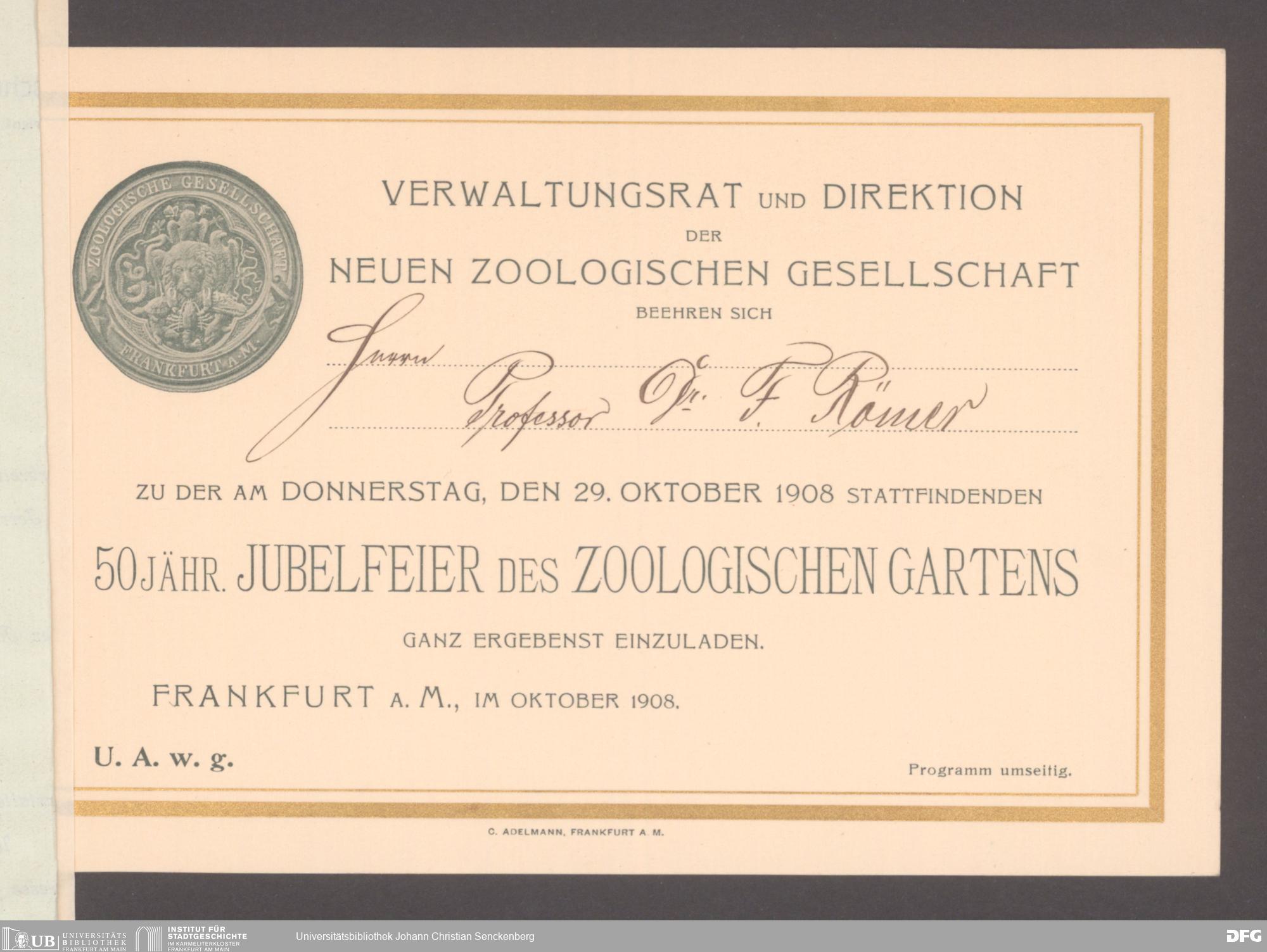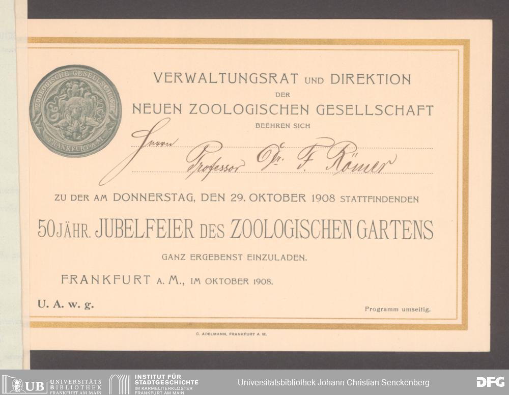 V176 Senckenberg Gesellschaft für Naturforschung, 254 - An den Direktor des Senckenbergmuseums gerichtete Einladungen zu offiziellen Anlässen