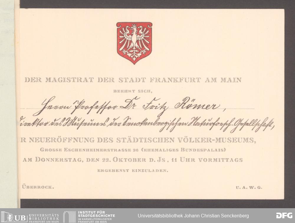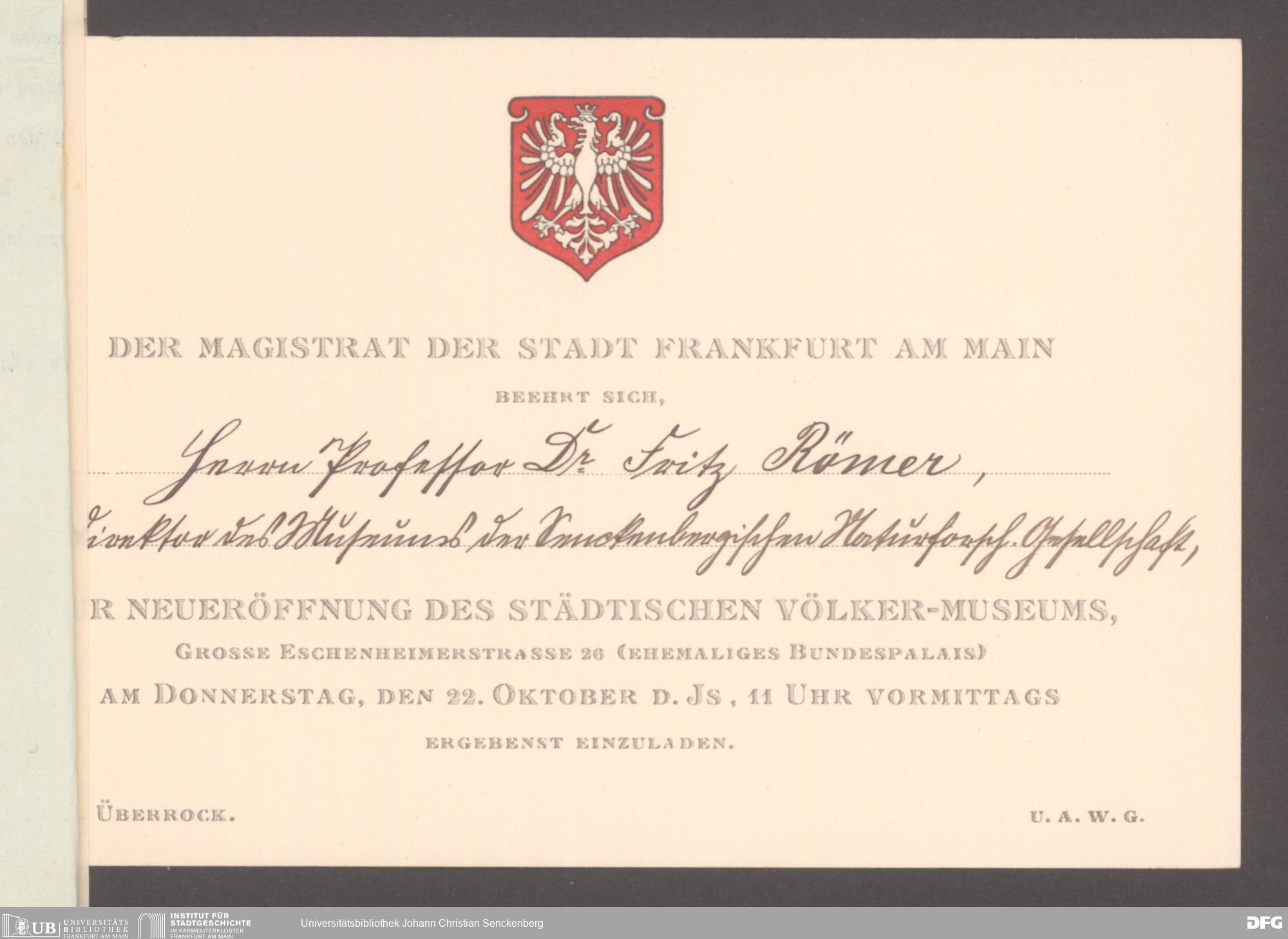 V176 Senckenberg Gesellschaft für Naturforschung, 254 - An den Direktor des Senckenbergmuseums gerichtete Einladungen zu offiziellen Anlässen