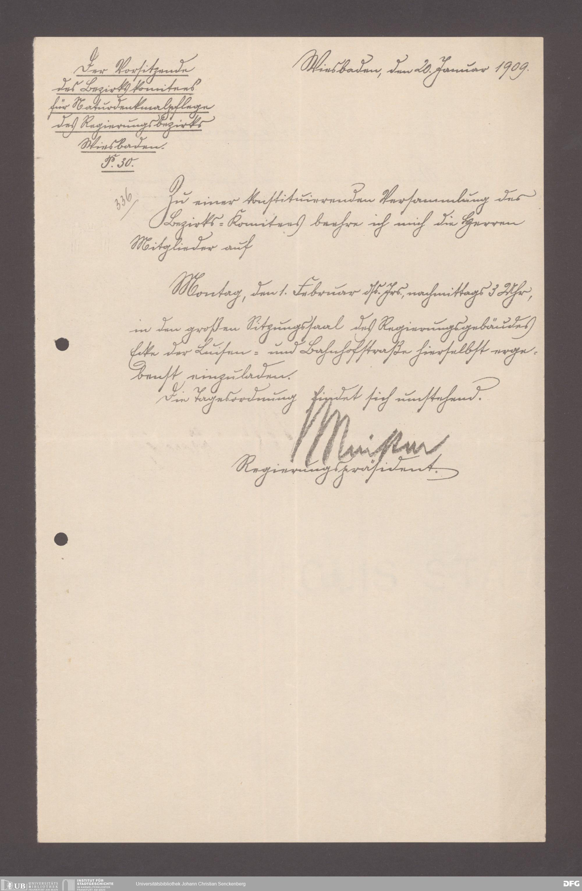 V176 Senckenberg Gesellschaft für Naturforschung, 254 - An den Direktor des Senckenbergmuseums gerichtete Einladungen zu offiziellen Anlässen