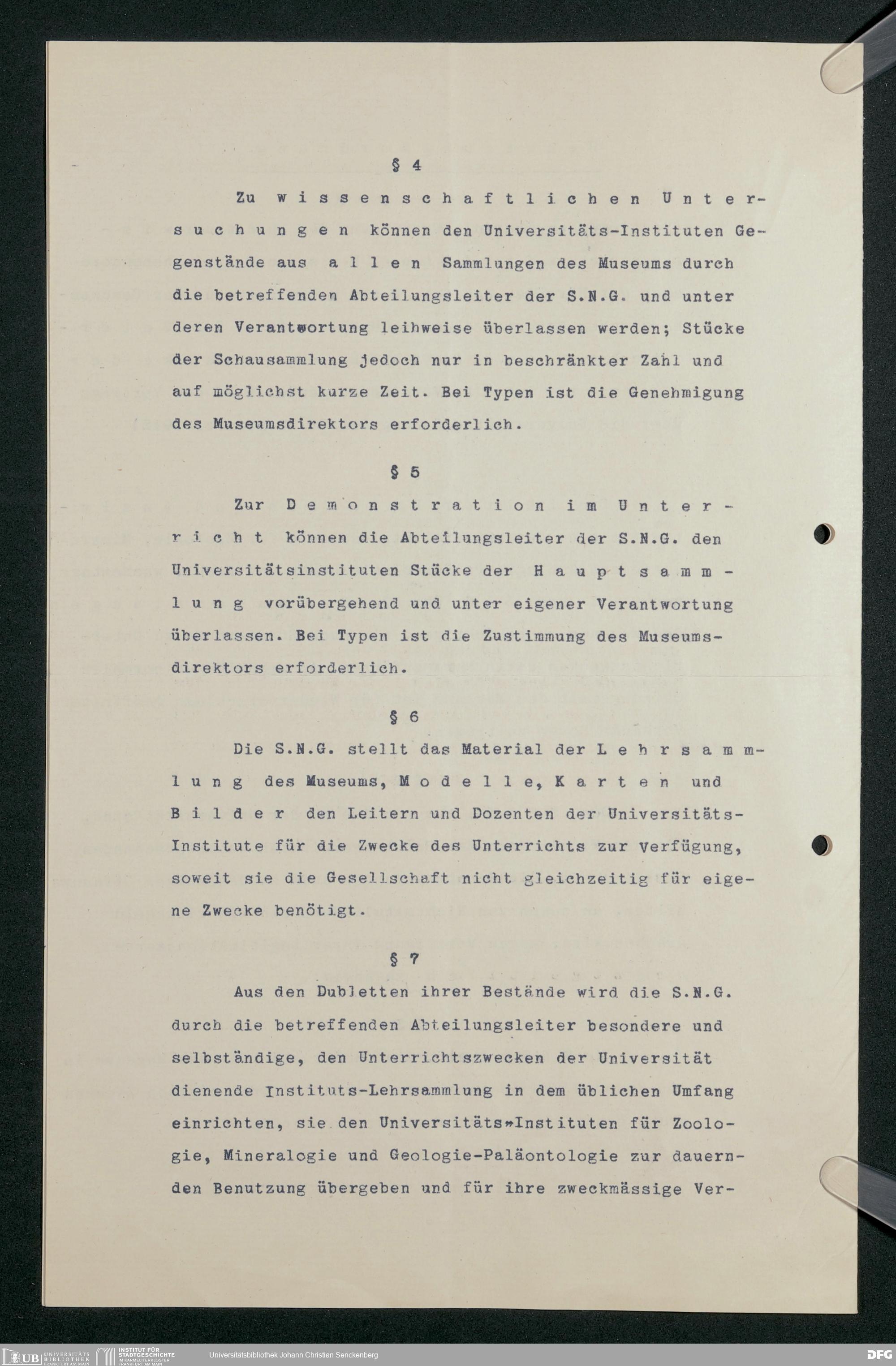 V176 Senckenberg Gesellschaft für Naturforschung, 255 - Benutzungsordnung für die Nutzung der Einrichtungen der Senckenbergischen Naturforschenden Gesellschaft durch die Universität