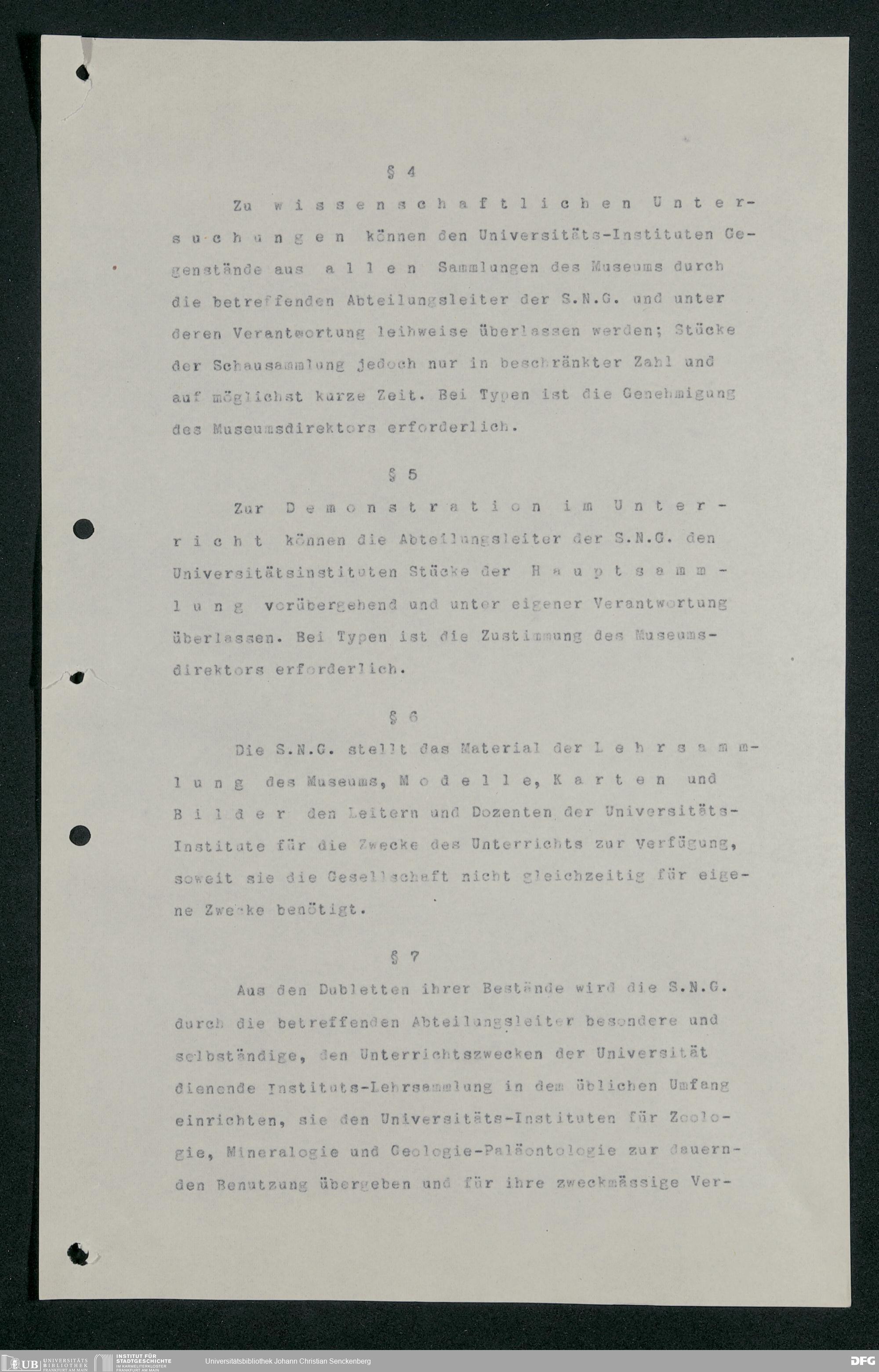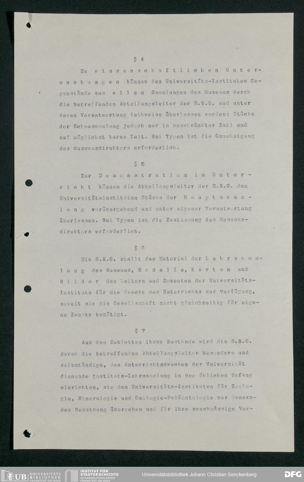 V176 Senckenberg Gesellschaft für Naturforschung, 255 - Benutzungsordnung für die Nutzung der Einrichtungen der Senckenbergischen Naturforschenden Gesellschaft durch die Universität