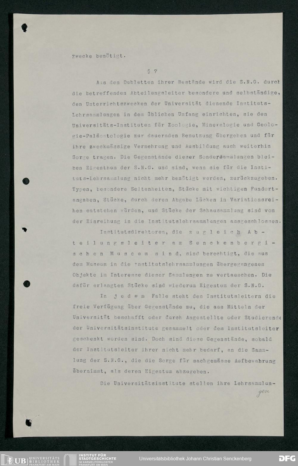 V176 Senckenberg Gesellschaft für Naturforschung, 255 - Benutzungsordnung für die Nutzung der Einrichtungen der Senckenbergischen Naturforschenden Gesellschaft durch die Universität