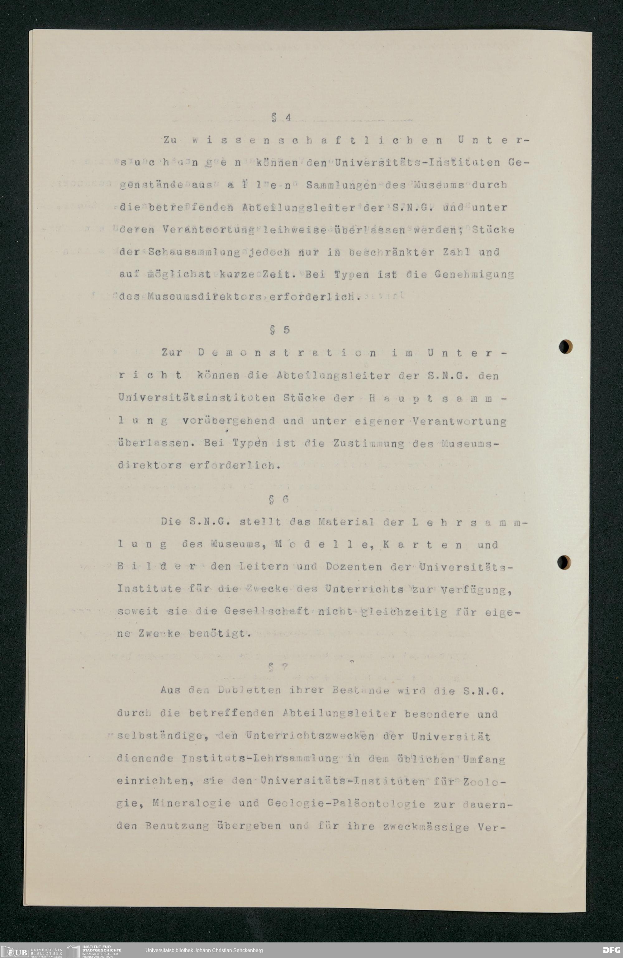 V176 Senckenberg Gesellschaft für Naturforschung, 255 - Benutzungsordnung für die Nutzung der Einrichtungen der Senckenbergischen Naturforschenden Gesellschaft durch die Universität