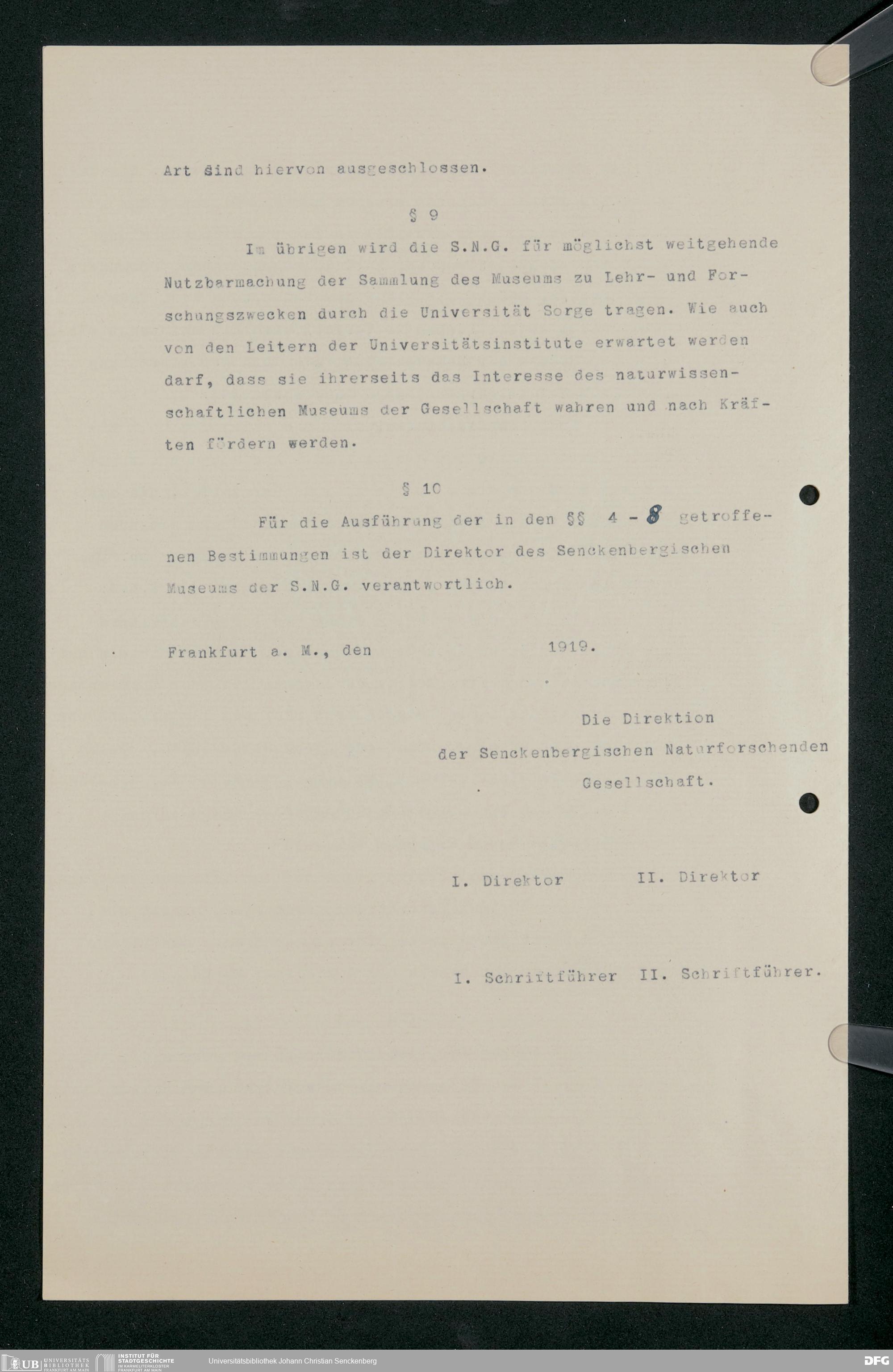 V176 Senckenberg Gesellschaft für Naturforschung, 255 - Benutzungsordnung für die Nutzung der Einrichtungen der Senckenbergischen Naturforschenden Gesellschaft durch die Universität