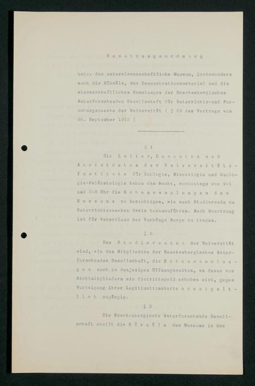 V176 Senckenberg Gesellschaft für Naturforschung, 255 - Benutzungsordnung für die Nutzung der Einrichtungen der Senckenbergischen Naturforschenden Gesellschaft durch die Universität