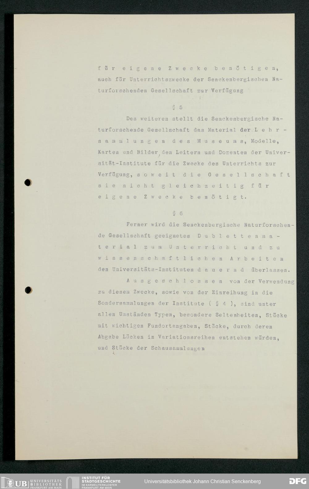V176 Senckenberg Gesellschaft für Naturforschung, 255 - Benutzungsordnung für die Nutzung der Einrichtungen der Senckenbergischen Naturforschenden Gesellschaft durch die Universität
