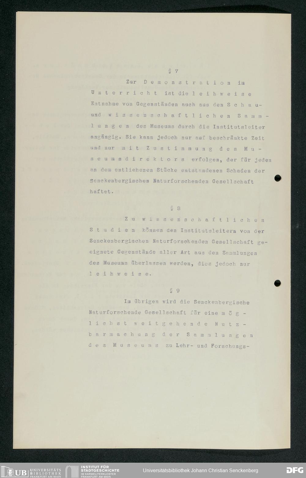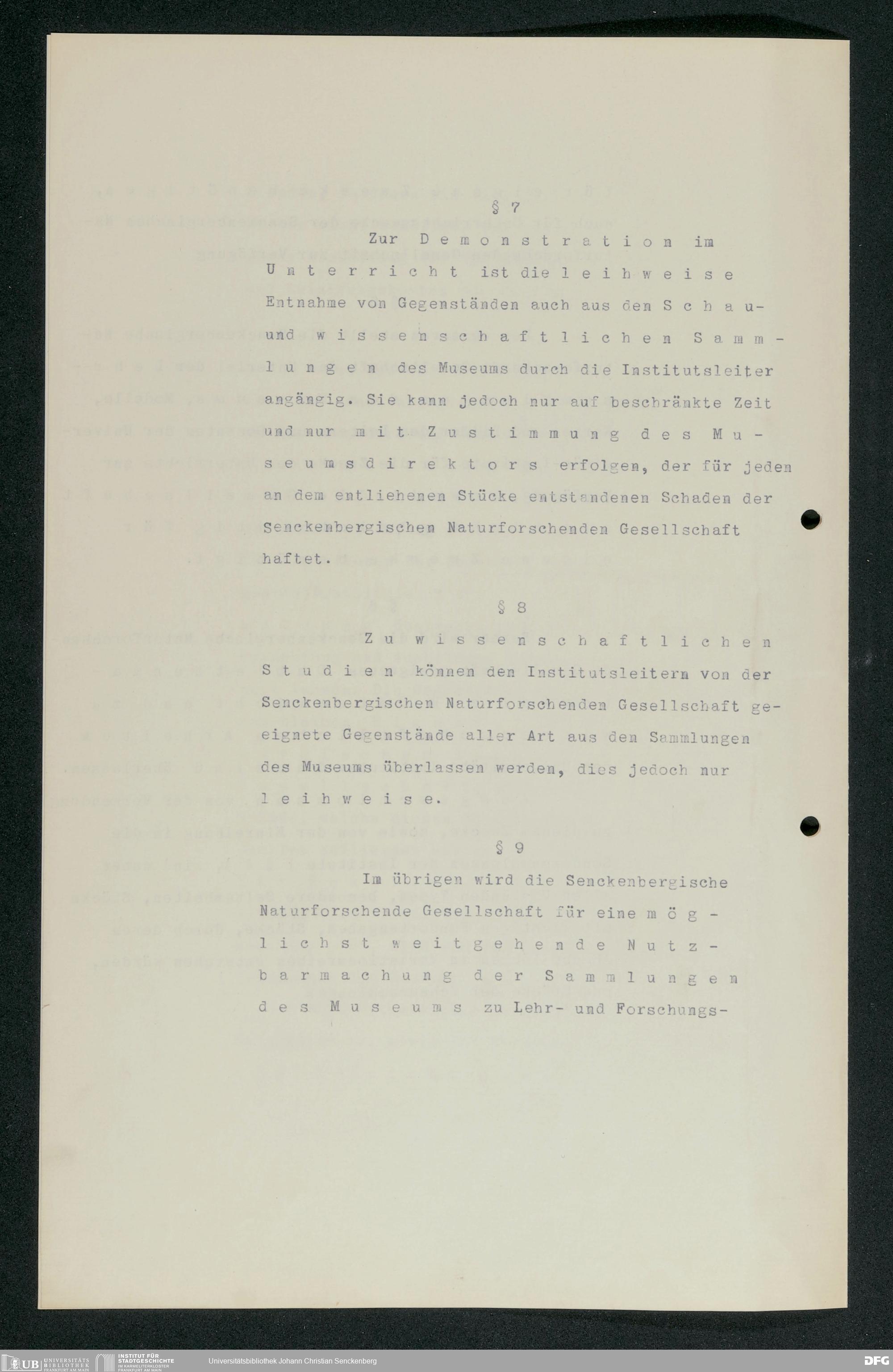 V176 Senckenberg Gesellschaft für Naturforschung, 255 - Benutzungsordnung für die Nutzung der Einrichtungen der Senckenbergischen Naturforschenden Gesellschaft durch die Universität